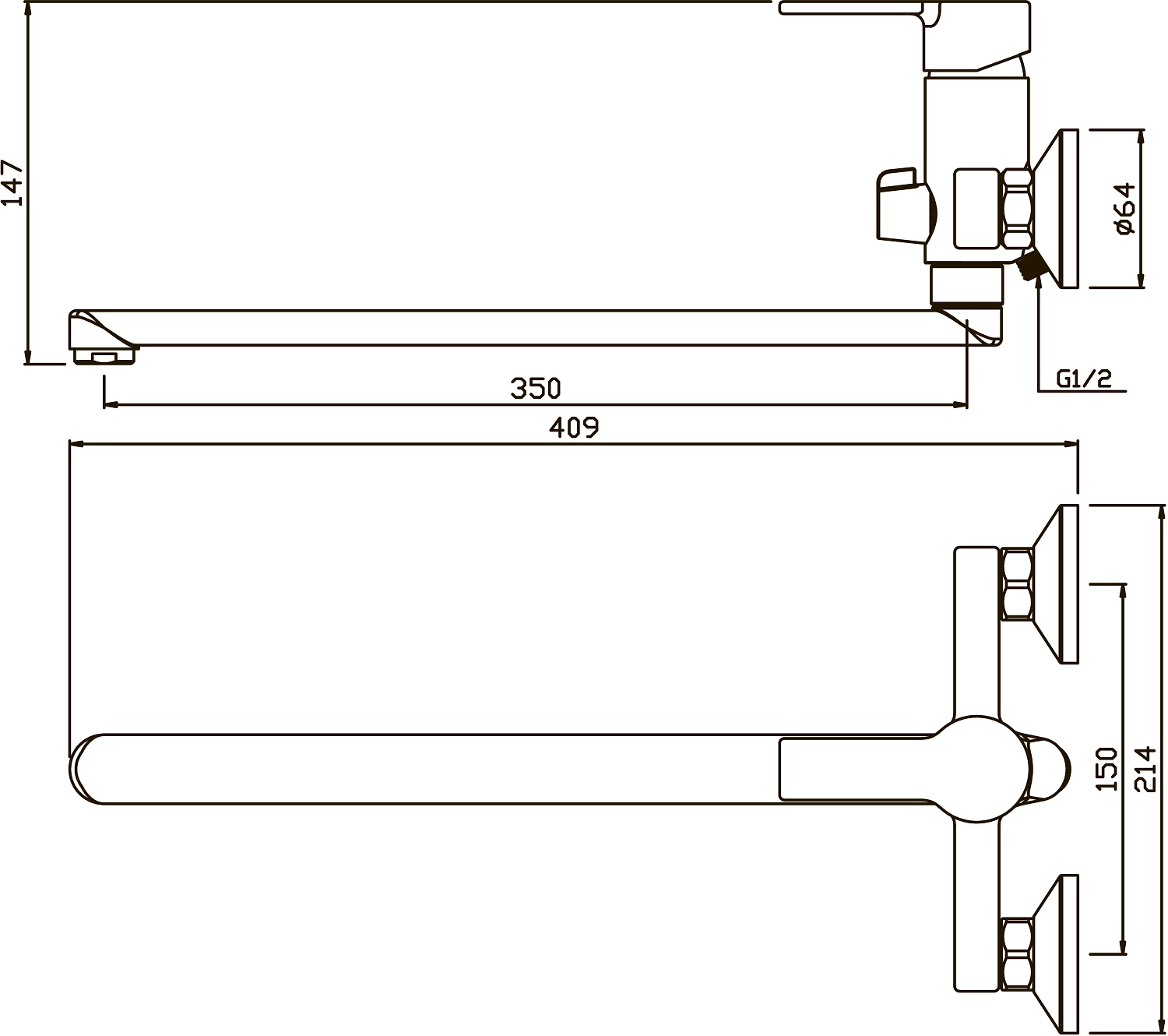 - - Длинный поворотный излив 350мм – можно использовать и для ванны и для раковины.