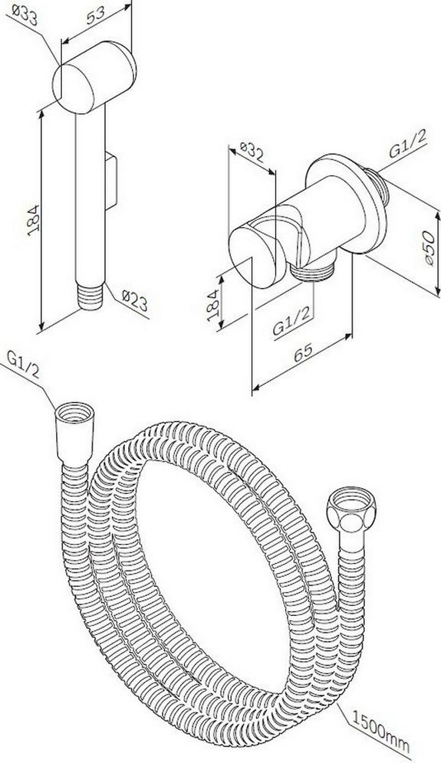 Гигиеническая лейка с шлангом и держателем - готовое решение для дополнительного оснащения подвесного или напольного унитаза функциями биде.