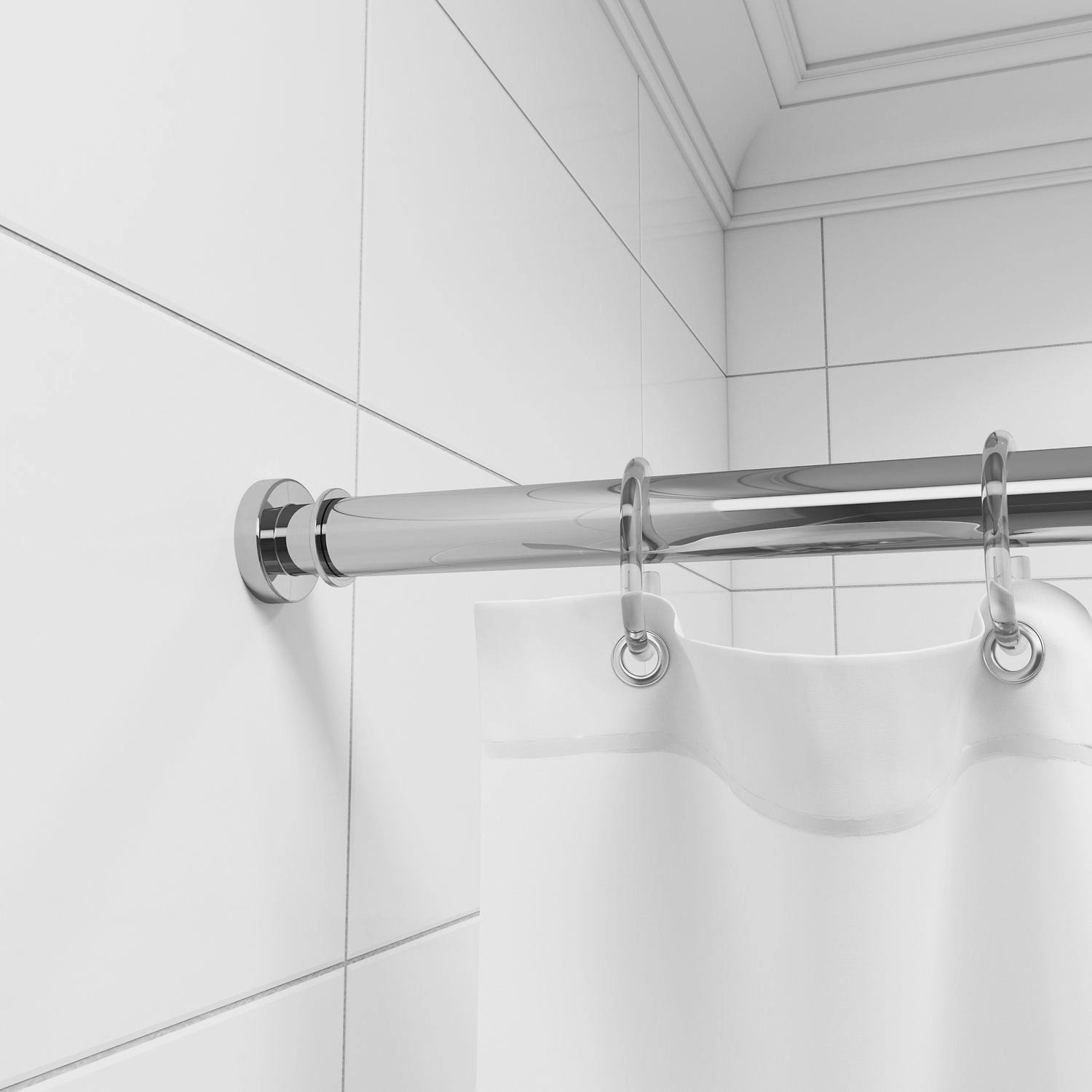 Карниз для ванной комнаты из алюминия. Телескопический, длина от 110 до 200 см. Предусмотрена фиксация первого и последнего кольца, за счет чего штора не скользит по карнизу.