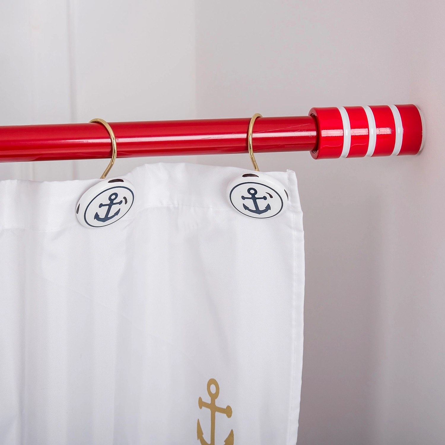 Телескопический карниз украшенный наконечниками с горизонтальными полосками выполнен в минималистичном стиле.