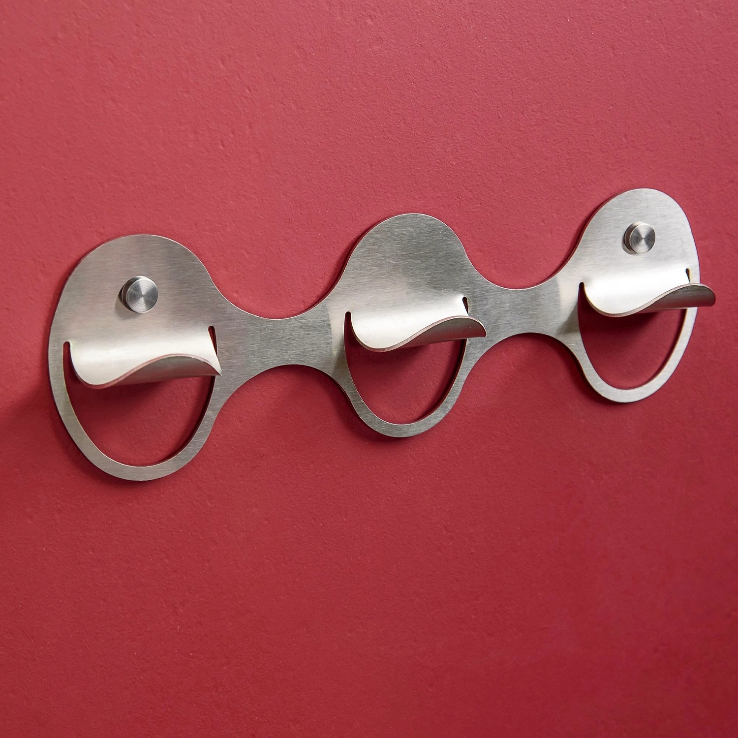 Планка с тремя крючками из нержавеющей стали с глянцевым покрытием 22,6х6 см. Надежное крепление к стене с помощью шурупов позволяет планке выдерживать значительный вес.