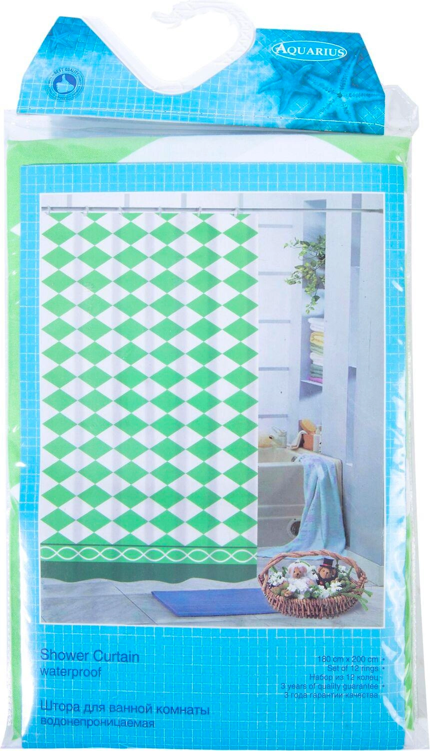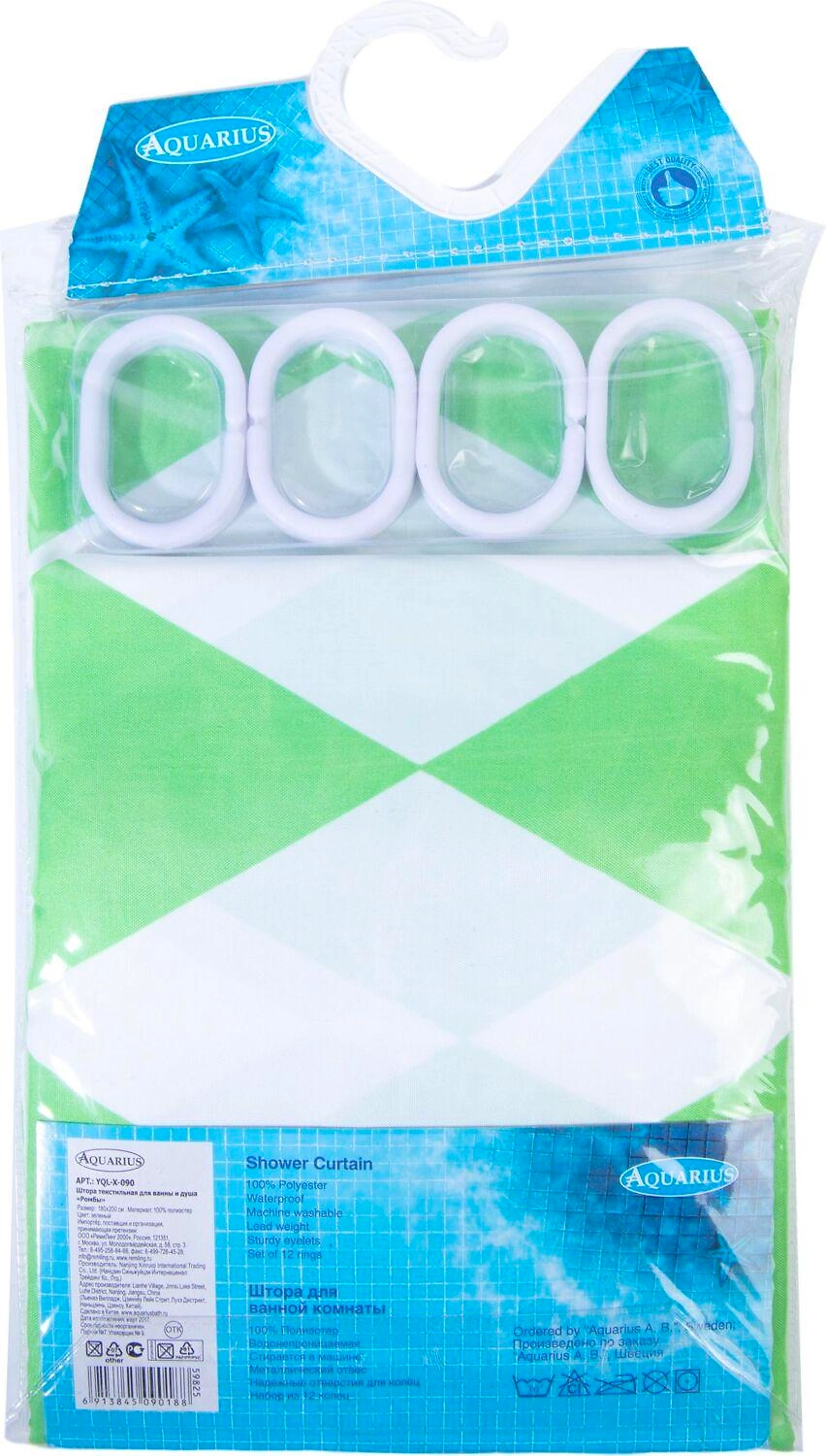 Штора для ванны Aquarius Ромбы YQL-X-090 180х200 см зеленая