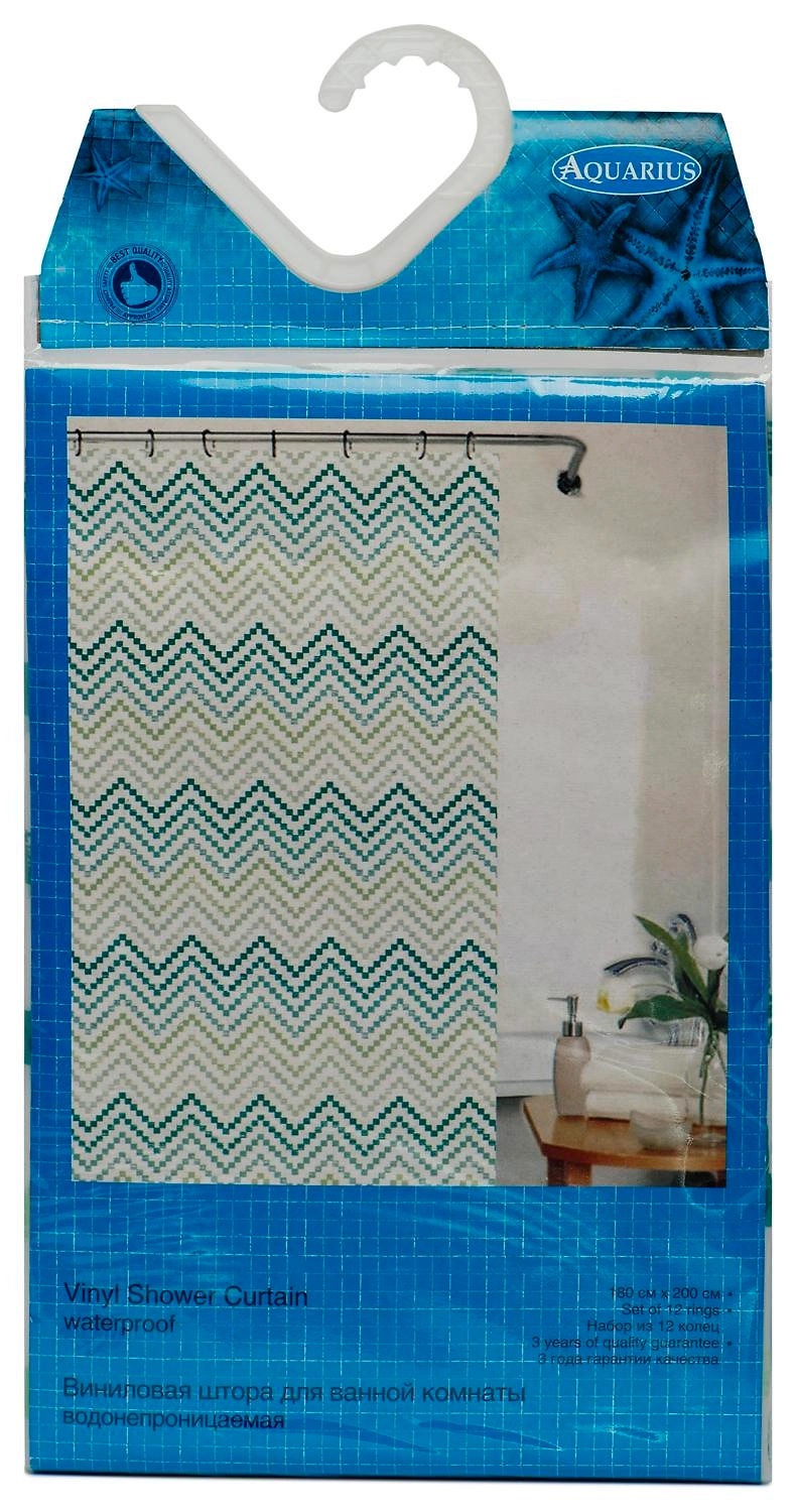 Штора для ванны Aquarius Зигзаг 180х200 см синяя