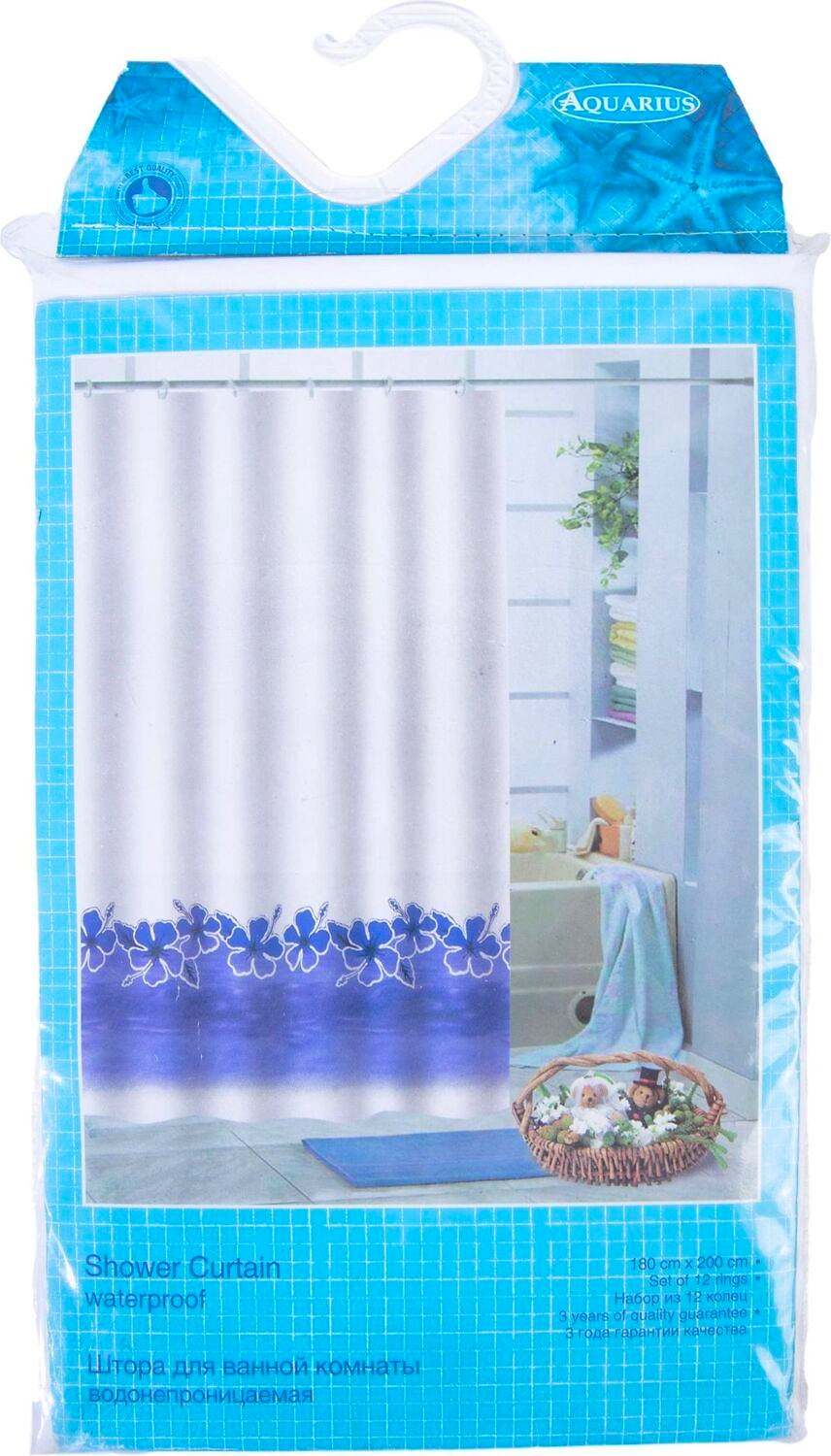 Штора для ванны VANSTORE Цветы 180х200 см бело-синяя