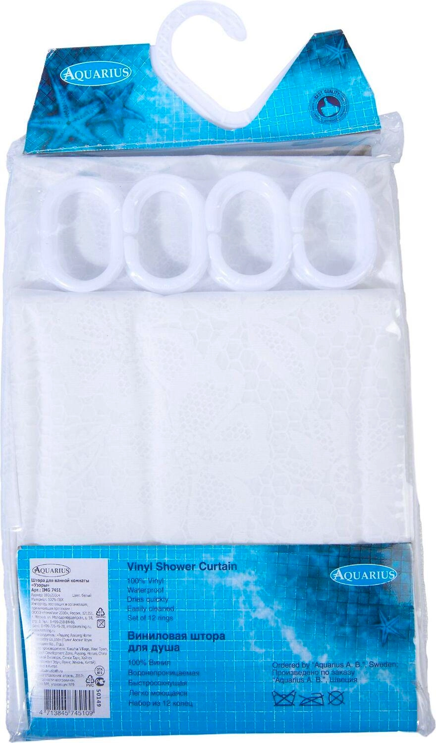 Штора для ванны VANSTORE Узоры 180х200 см белая