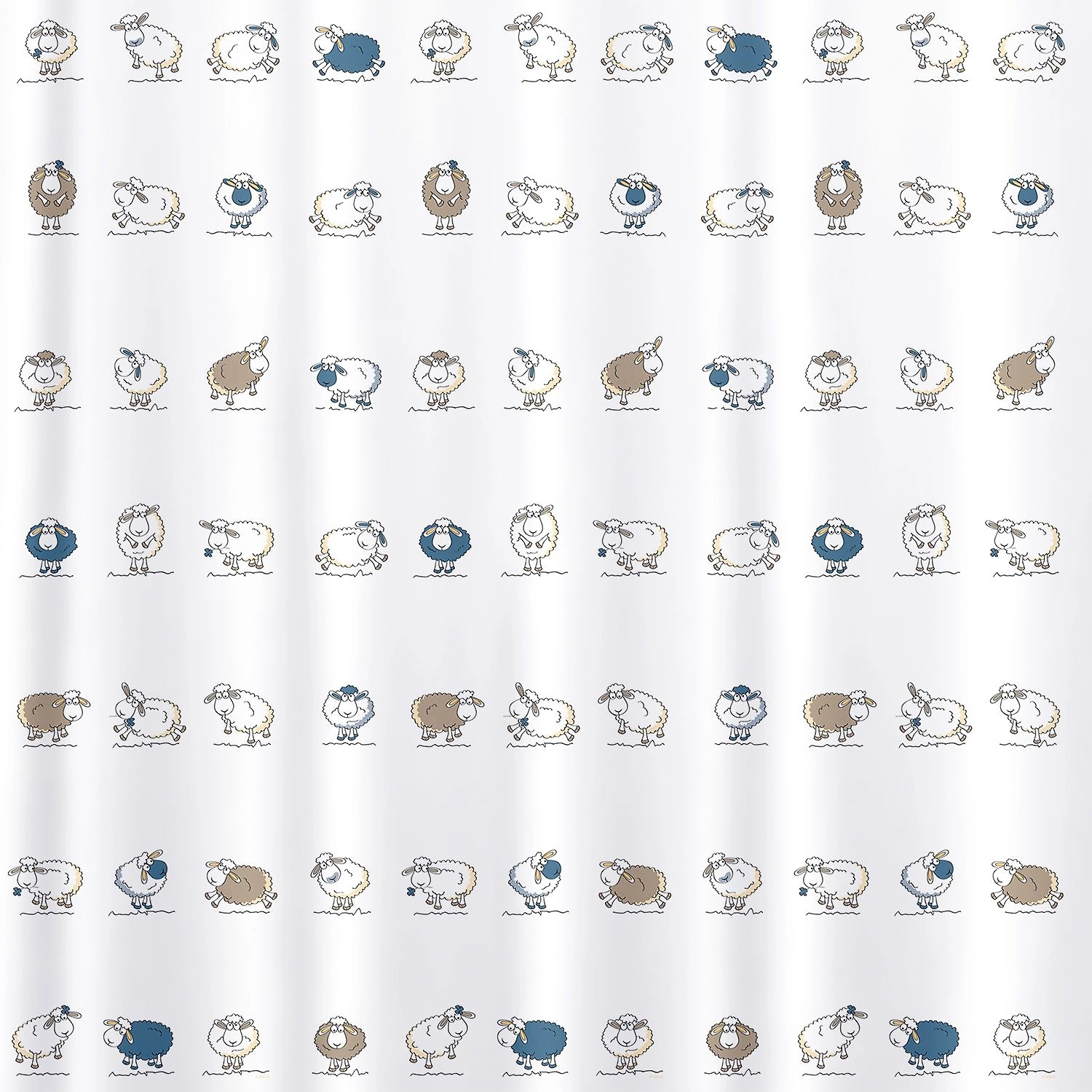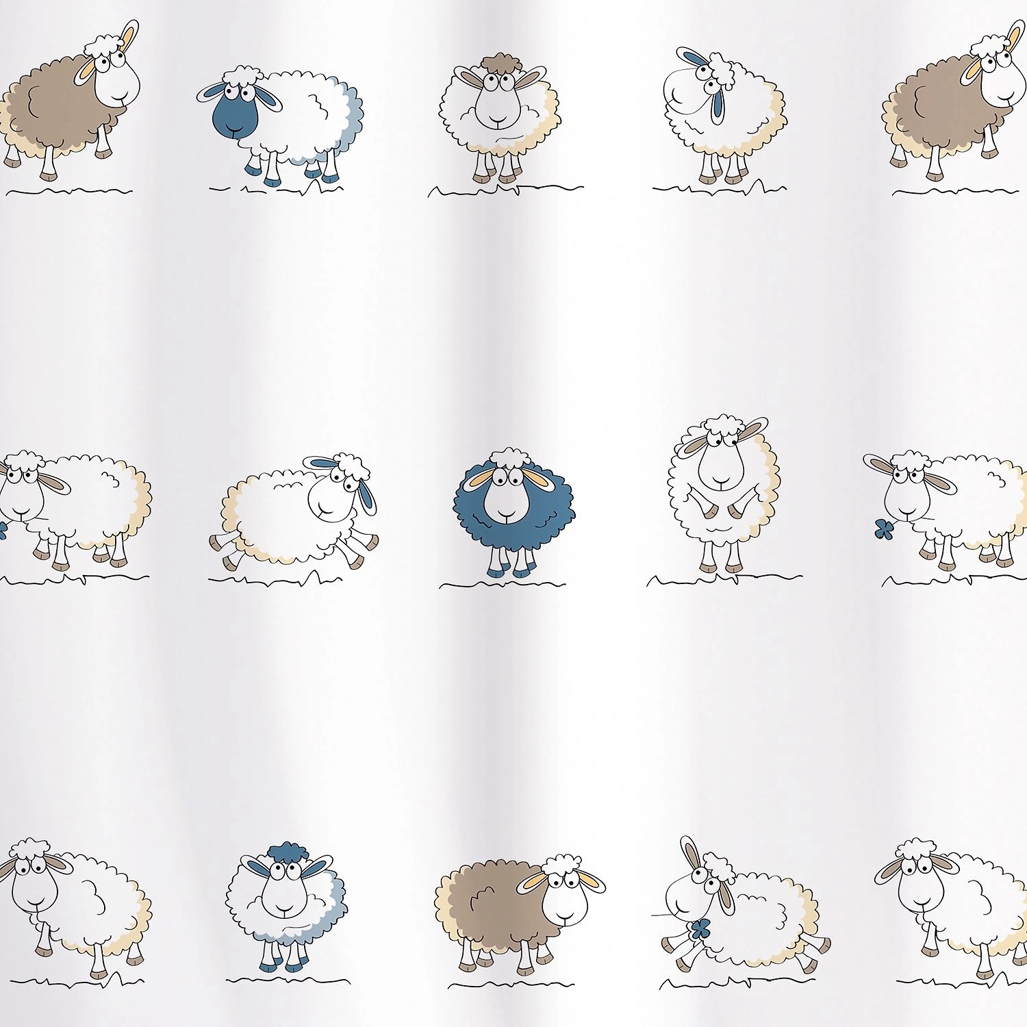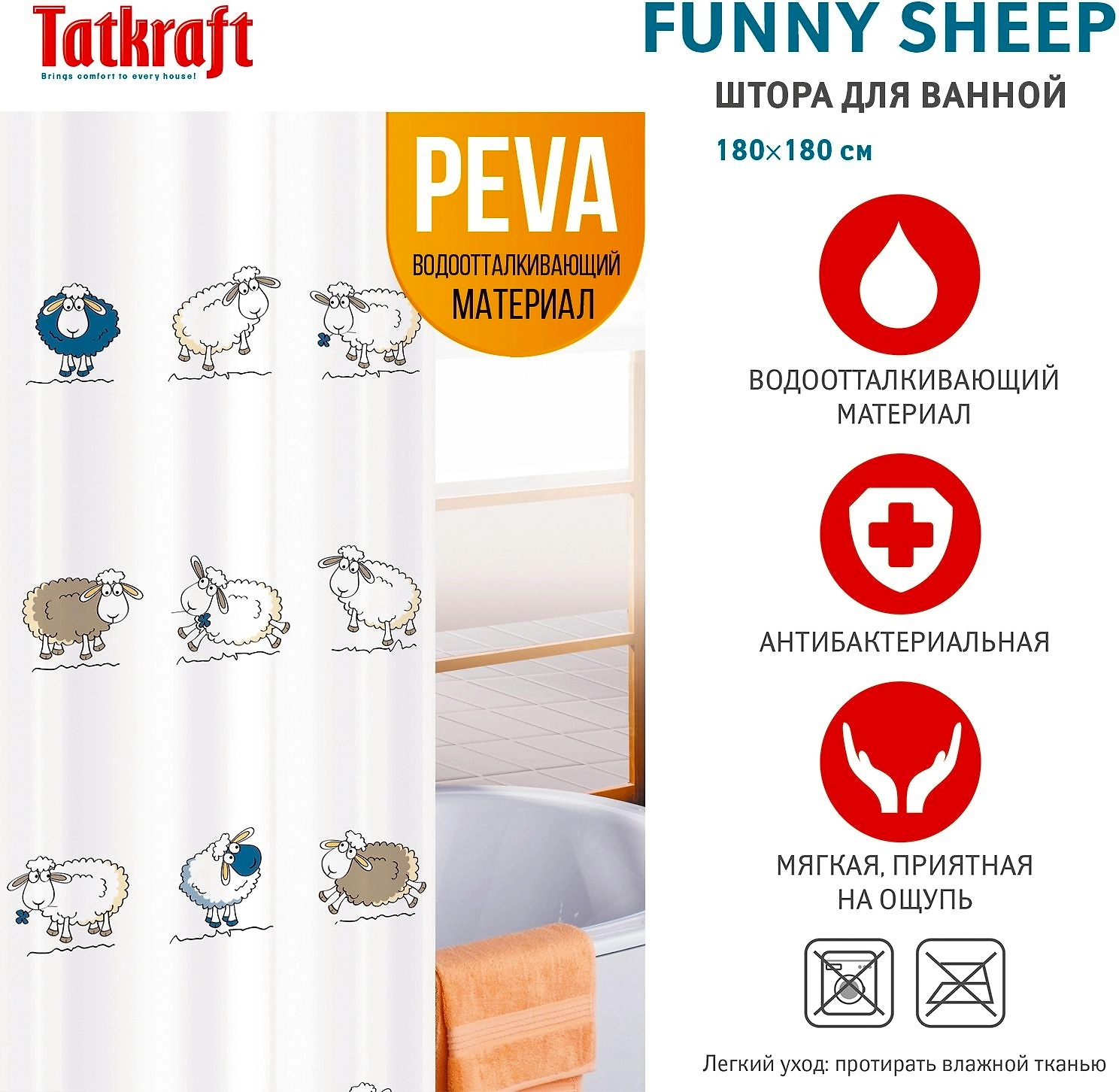 Занавеска для ванной с милыми овечками отлично задержит брызги воды и украсит Вашу ванную комнату, подчеркнет стиль Вашего дома и добавит хорошего настроения. Размер 180х180 см. В комплекте 12 колец. Материал - PEVA.