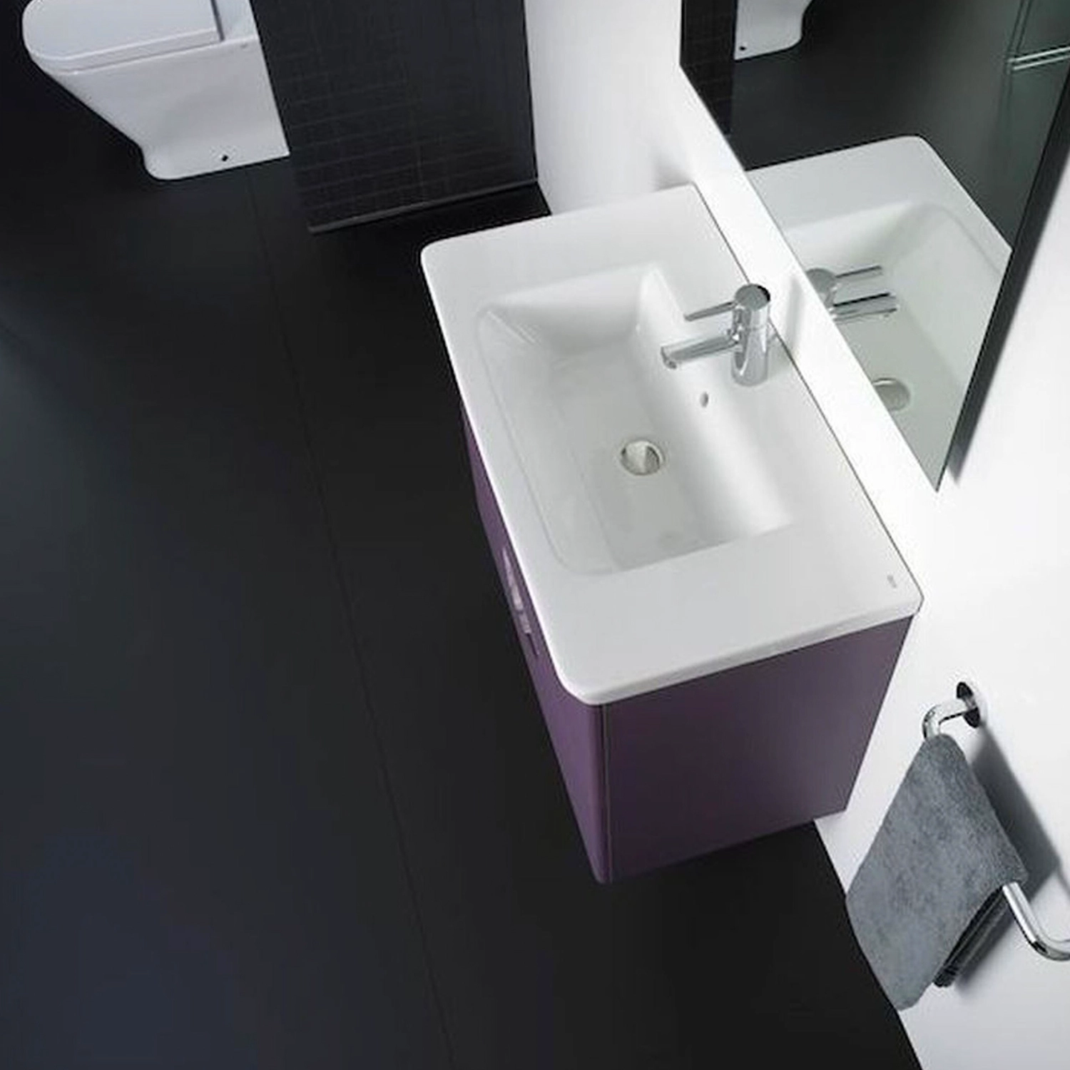 The Gap - эксклюзивная авторская коллекция сантехники и мебели от известного дизайнера Антонио Булло. Тумбы, шкафы и зеркала с белой, бежевой и фиолетовой отделкой комбинируются с раковинами, унитазами и биде разных размеров и форм.