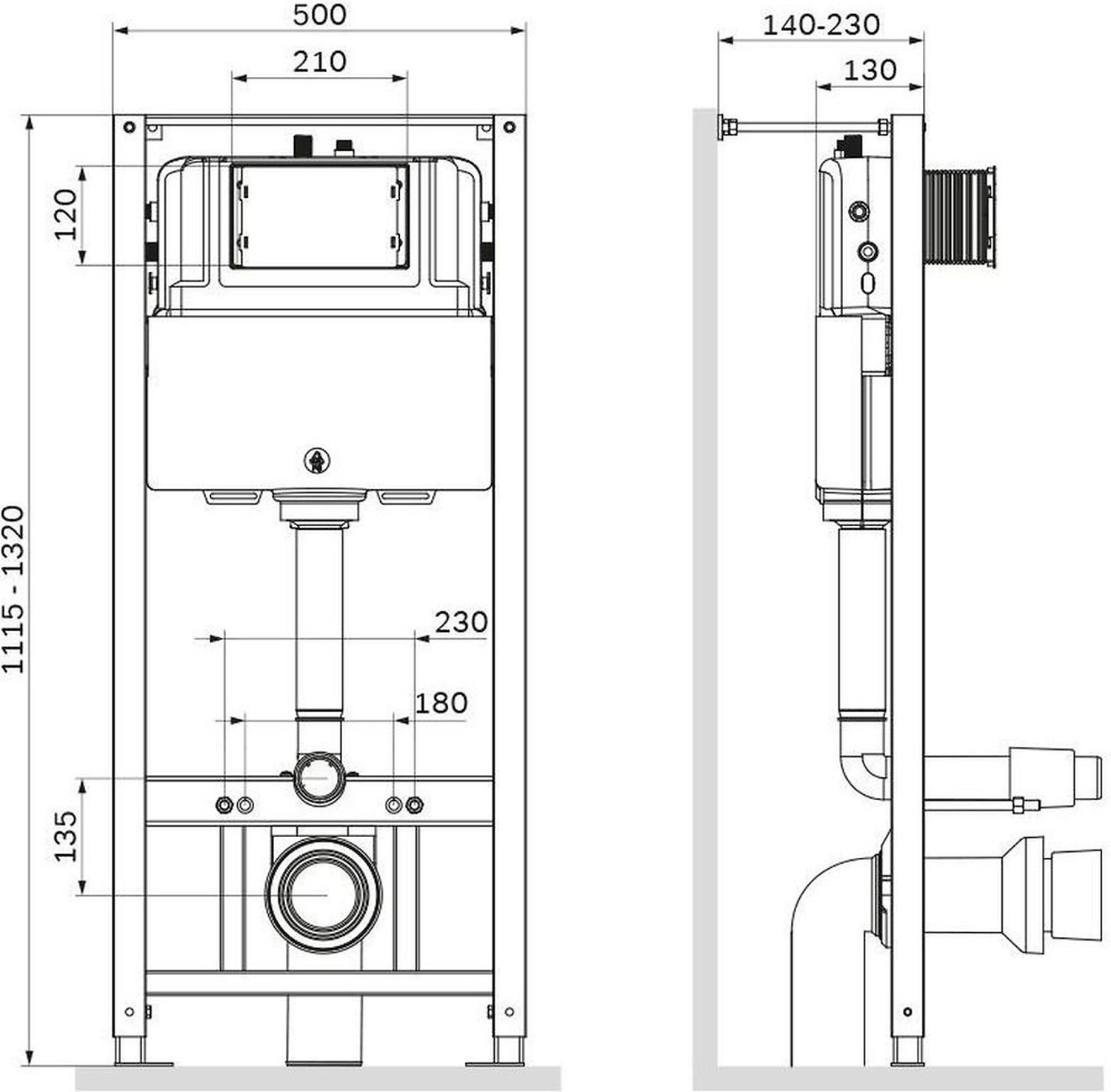 - Благодаря вертикальным ребрам жесткости инсталляция подходит для унитазов любых размеров, включая модели с небольшой контактной поверхностью.