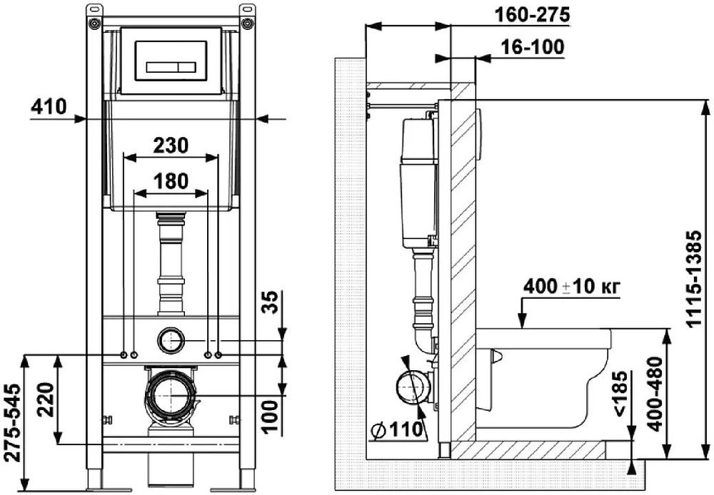- - Эконом слив 3л, полный слив настраивается от 5,5 до 8,5л