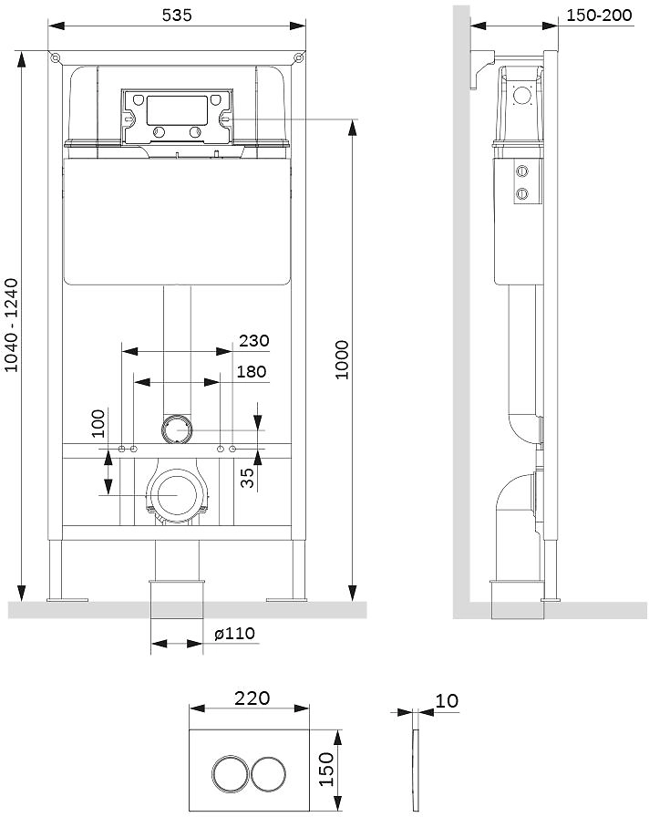 Максимально полная комплектация - все необходимые крепления патрубки звукоизолирующая прокладка в комплекте. Вертикальные ребра жесткости в конструкции рамы – дополнительная опора в месте давления керамики на стену. Экономия пространства благодаря узкому бачку – 120 мм глубиной. Заливной клапан с низким уровнем шума - Класс II согласно европейского стандарта EN 14124. В комплекте пневматическая клавиша из ABS пластика в цвете глянцевый хром.
