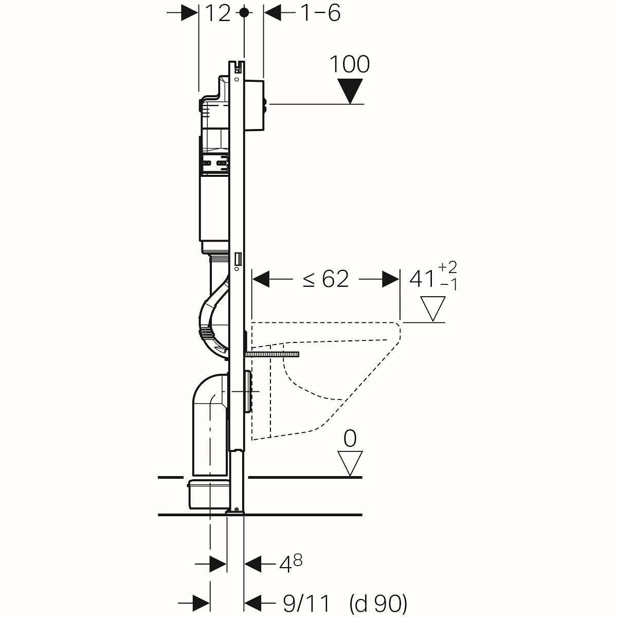 Инсталляция GEBERIT Duofix подходит для установки перед капитальной стеной, в пристенке или разделительной перегородке.