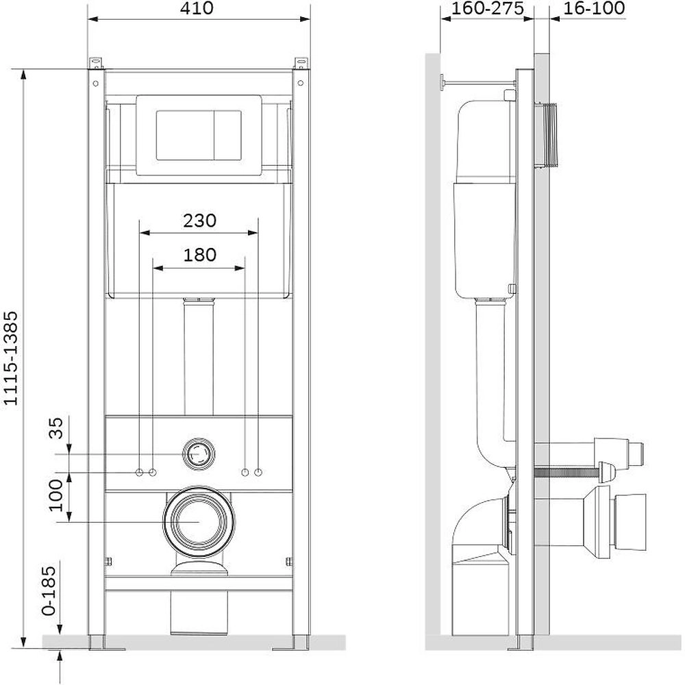 - Изолированный бачок оснащен удобной механической клавишей с двумя режимами смыва.