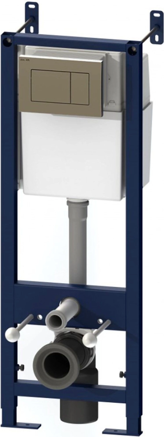 Неразборная рама из стального профиля выдерживает нагрузку до 400 кг. Полностью изолированный бачок с двухрежимной смывной арматурой. Укомплектован механической клавишей в цвете белый.