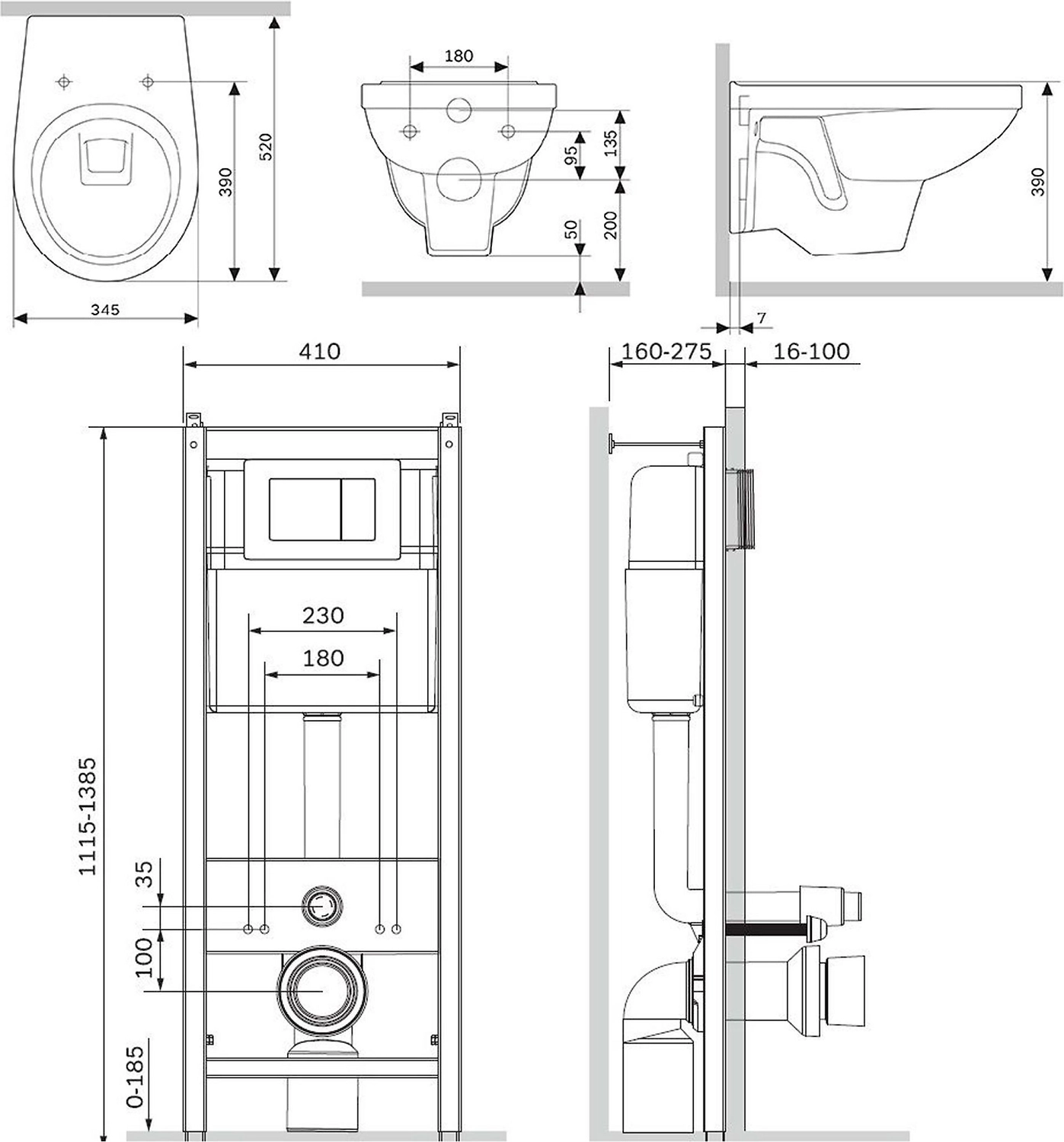 • Максимальная монтажная высота 185