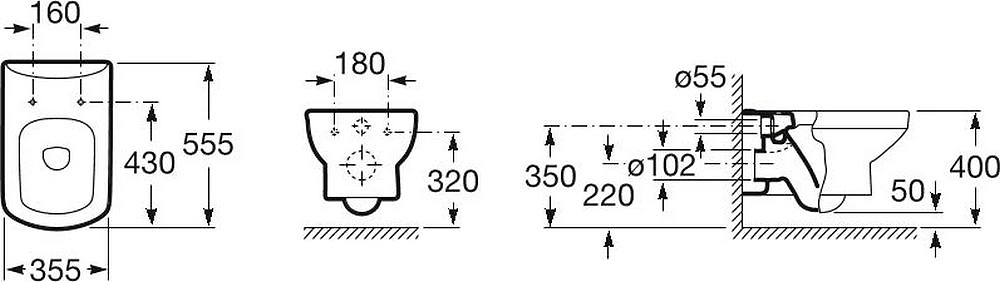 • Глубина унитаза 555