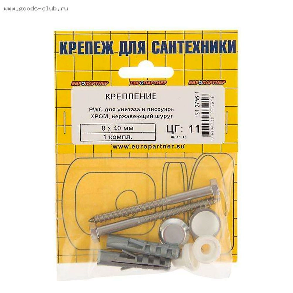 Комплект крепления унитаза ЕВРОПАРТНЕР белый+хром PWC40 8x65 мм НЕРЖ 2 шт