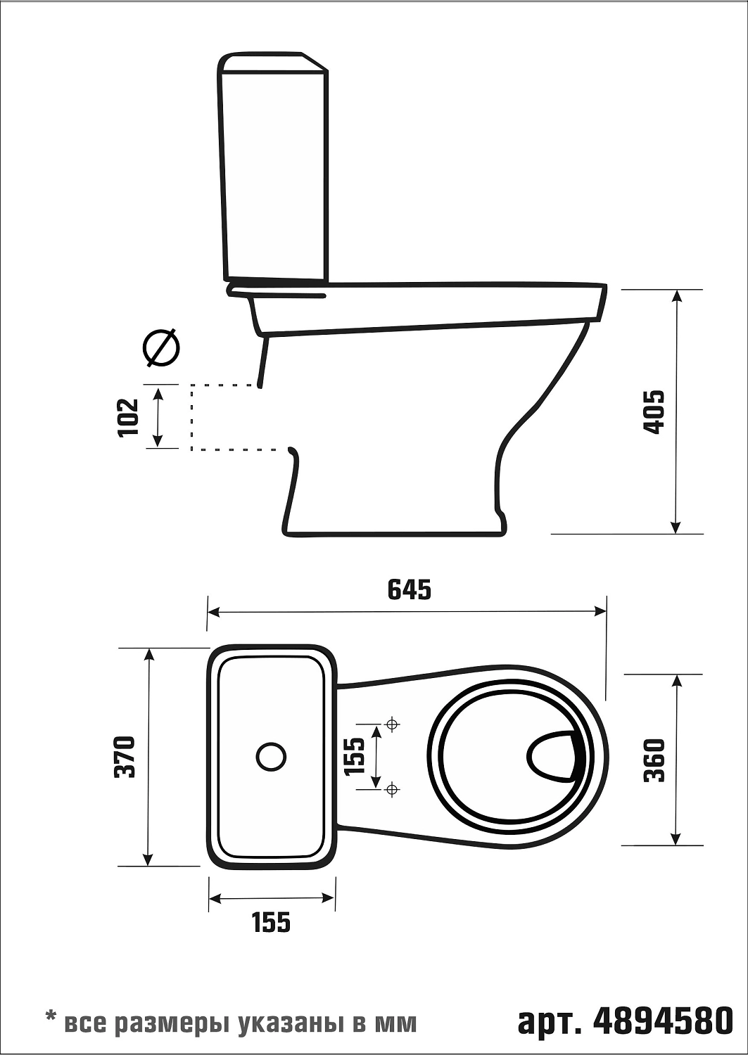 • Ширина унитаза