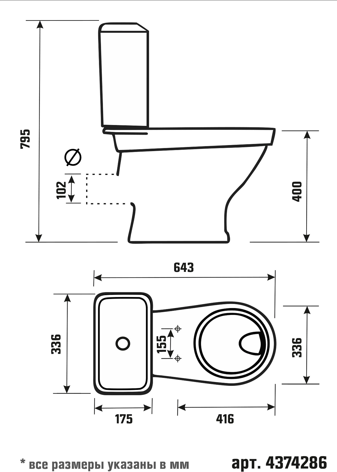 • Диаметр слива 102