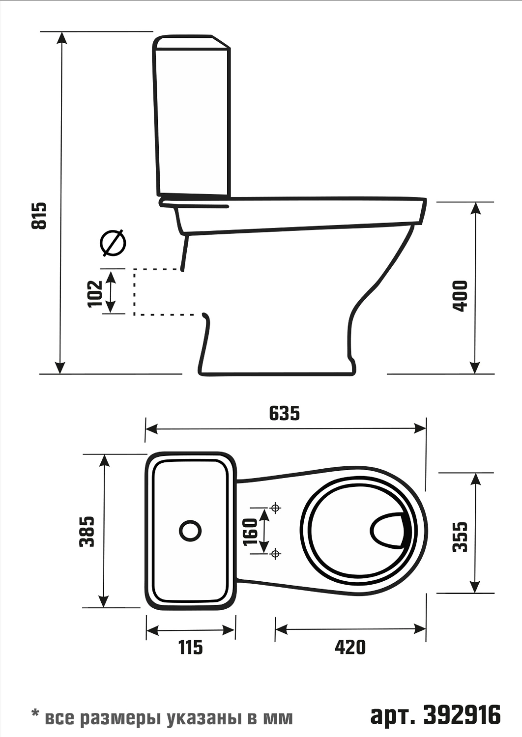 • Диаметр слива 102