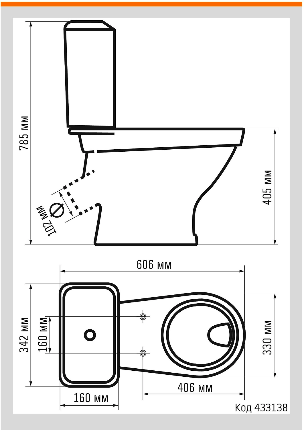 Унитаз Старт - классическая напольная модель с косым выпуском и кнопочной арматурой.