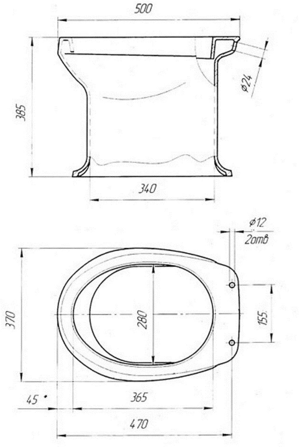• Глубина унитаза 370