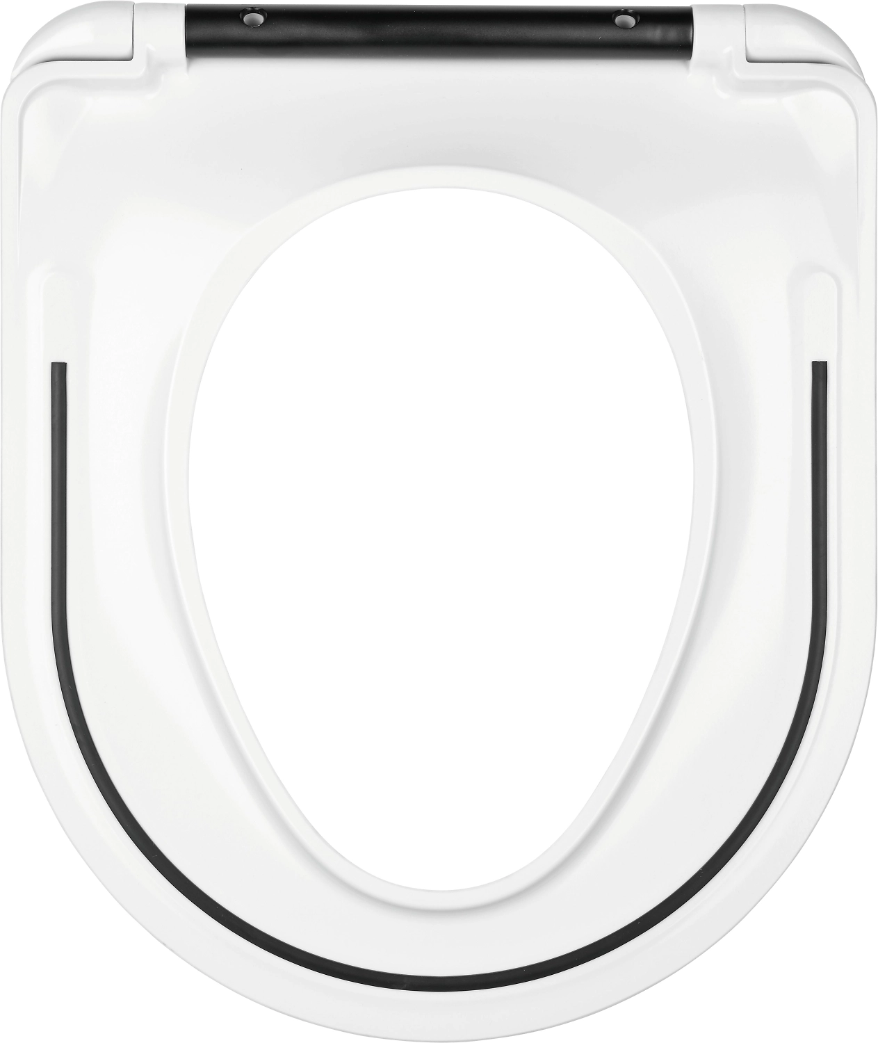 Сиденье для унитаза на шарнирах из черного матового алюминия с функцией автоматического бесшумного опускания.