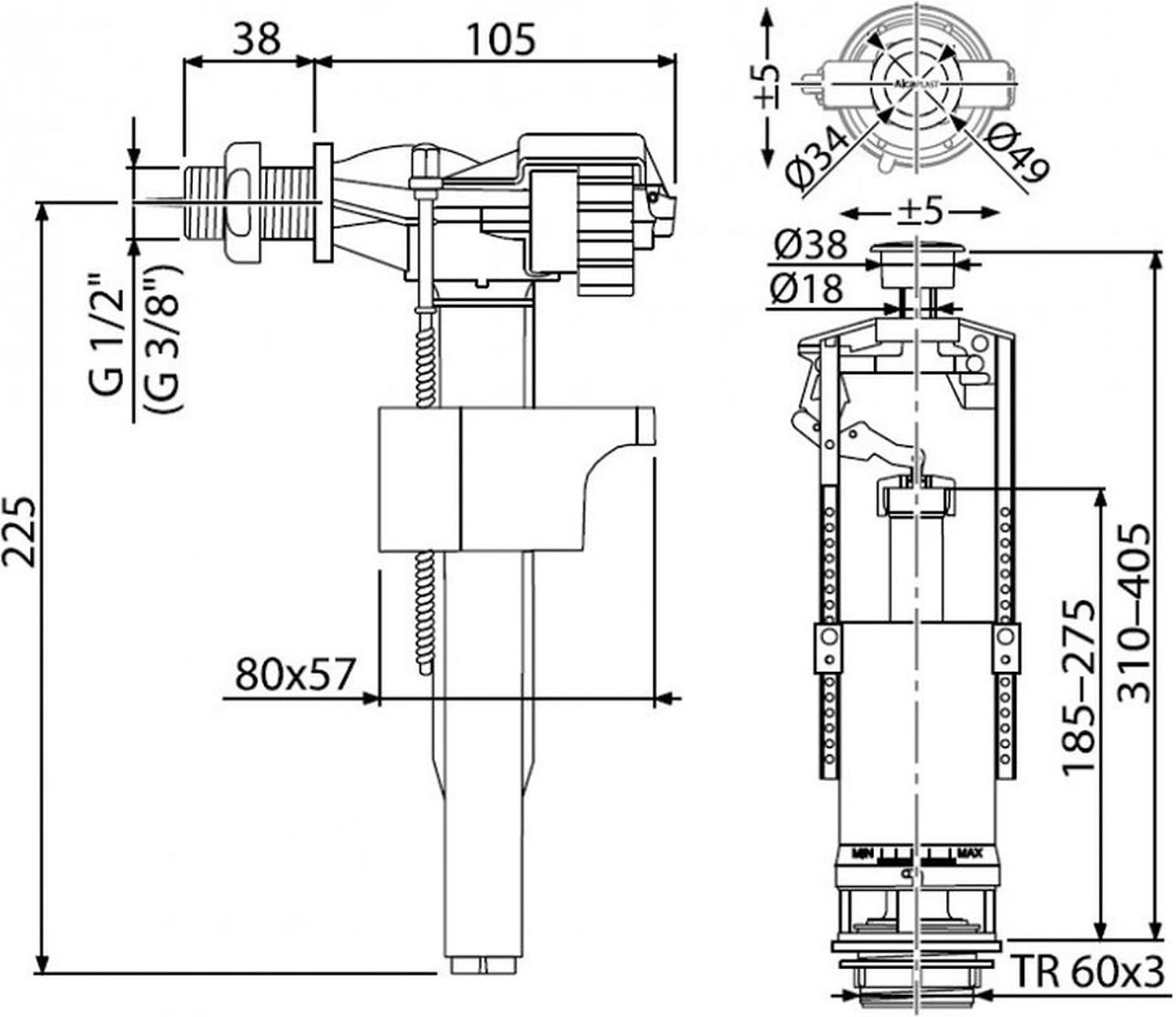 - Конструкция позволяет регулировать высоту механизма в зависимости от высоты бачка