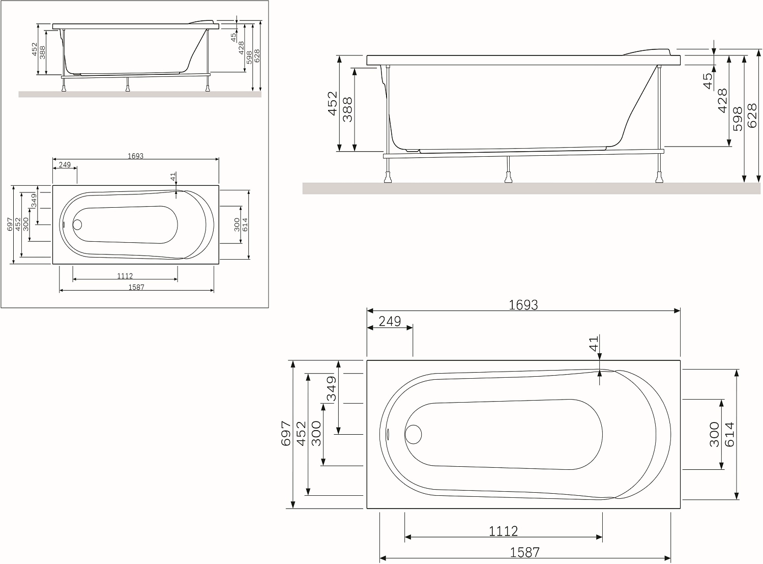 Фронтальная панель устанавливается совместно с акриловой ванной 170х70 см. Готовая конструкция имеет целостный гармоничный вид.