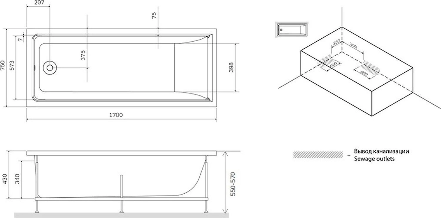 Ванна акриловая AM.PM GEM W90A-170-075W-A 170х75 см