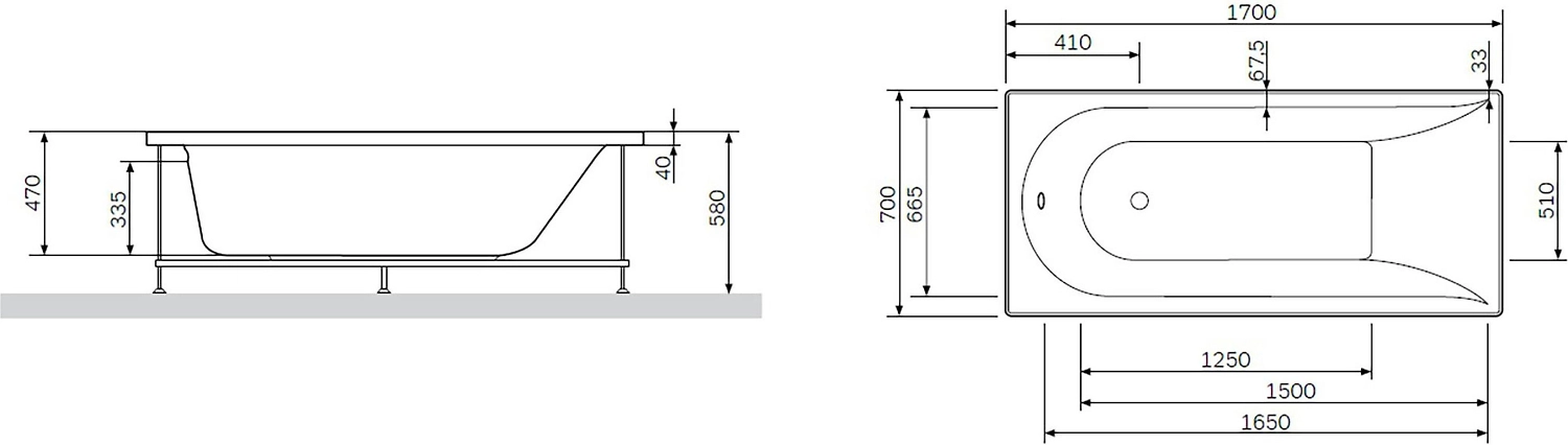 - За счет ультратонких бортов ванна имеет увеличенный внутренний объем 186 л при стандартном внешнем размере 170х70 см.