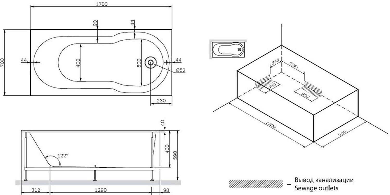 - Прямоугольная форма наружного контура и сравнительно небольшой вес ванны упрощают транспортировку и монтаж.