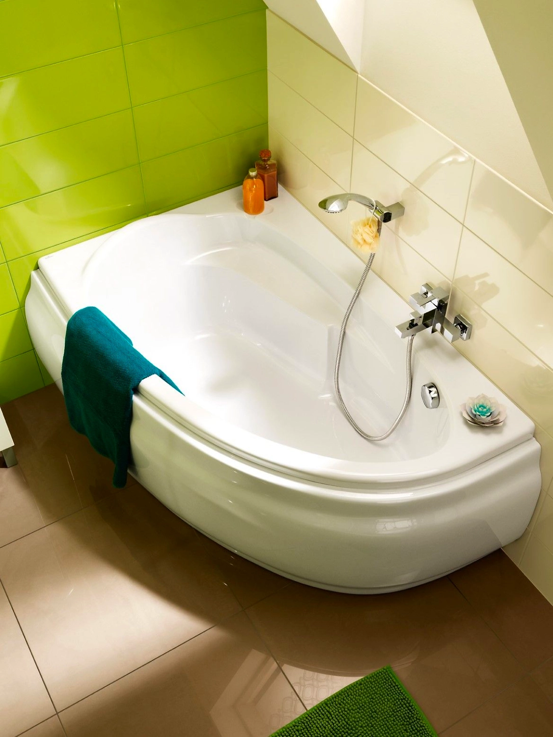 \- Необходимые банные принадлежности можно разместить на широких угловых бортиках.