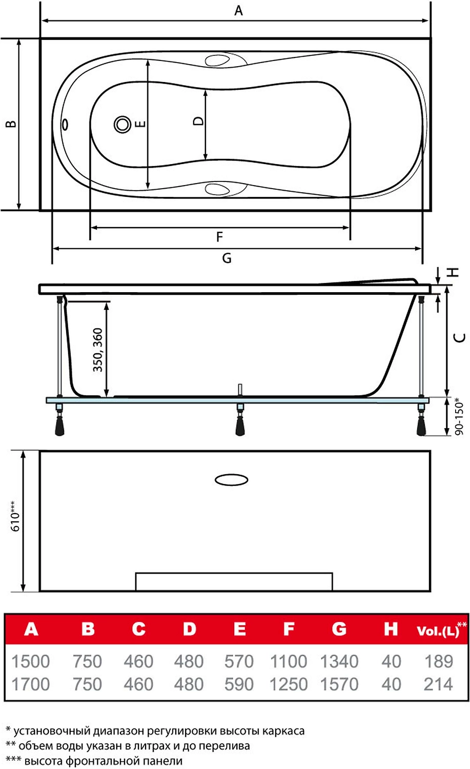 Универсальная акриловая ванна длиной 170 см подходит для стандартных санузлов городских квартир, может использоваться для купания, замачивания, стирки, мытья и других хозяйственных целей.