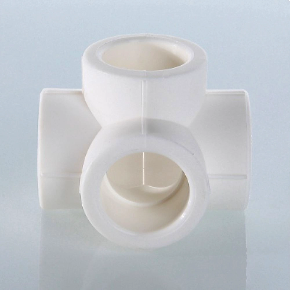 Полипропиленовый фитинг - крестовина двухплоскостная. Позволяет выполнить ответвления от трубопровода в двух направлениях, под углом 90 градусов друг к другу. Равнопроходная.