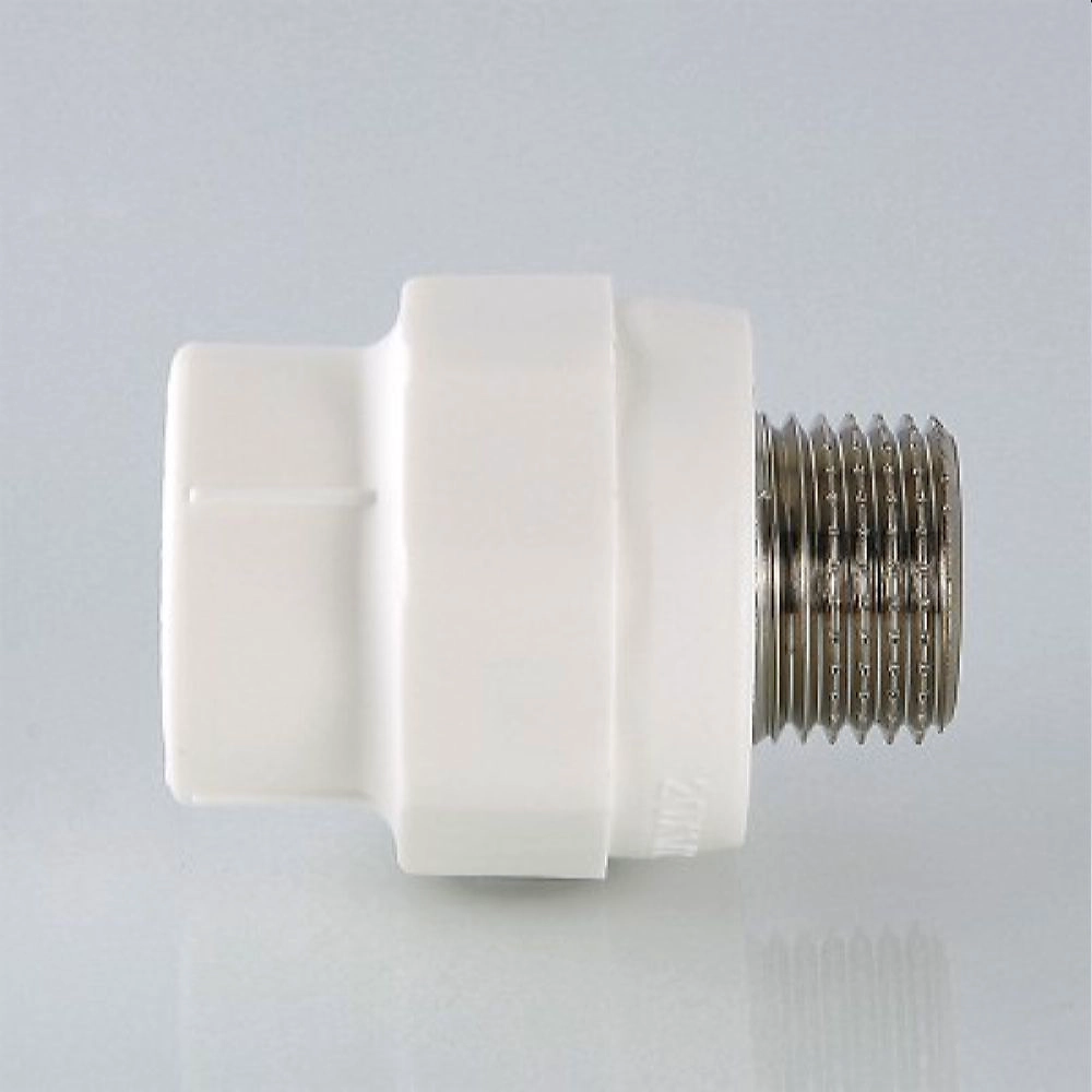 Прямой металлопластиковый фитинг для соединения полипропиленовой трубы и компонента инженерной системы с резьбовым подключением, 25 х 1/2". Резьба фитинга - наружная трубная по ГОСТу 6357.