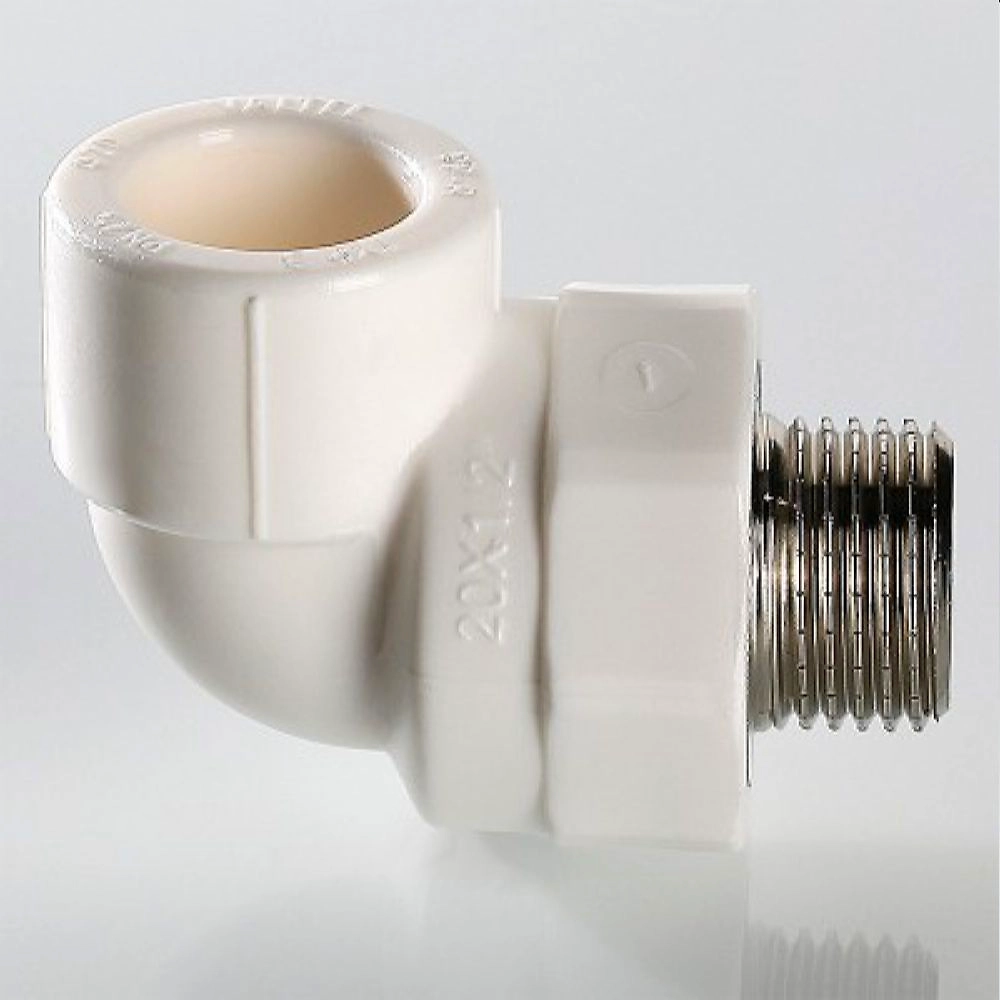 Двухсторонний металлопластиковый фитинг для соединения под углом 90 градусов друг к другу полипропиленового трубопровода и компонента инженерной системы с резьбовым подключением, 32 х 1". Резьба фитинга - наружная трубная, по ГОСТу 6357.