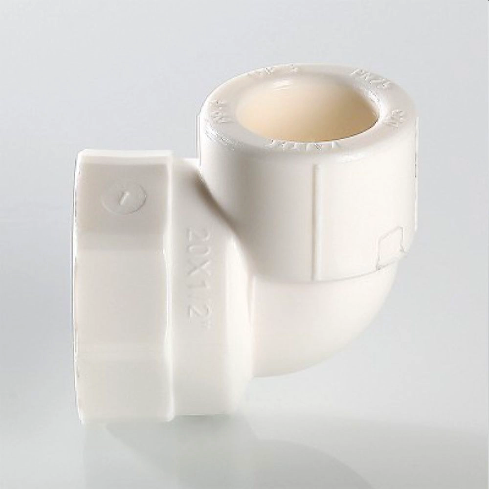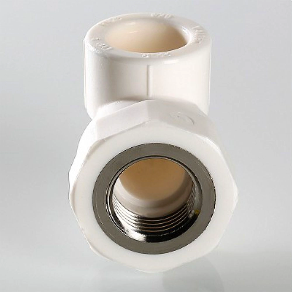 Двухсторонний металлопластиковый фитинг для соединения под углом 90 градусов друг к другу полипропиленового трубопровода и компонента инженерной системы с резьбовым подключением, 20 х 1/2". Резьба фитинга - внутренняя трубная, по ГОСТу 6357.