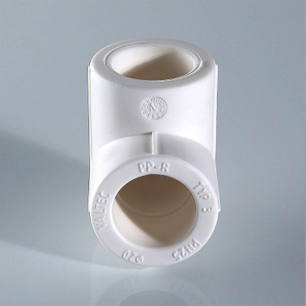 Двухсторонний фитинг для соединения элементов полипропиленового трубопровода под углом 90 градусов друг к другу. Монтаж осуществляется методом раструбной сварки.