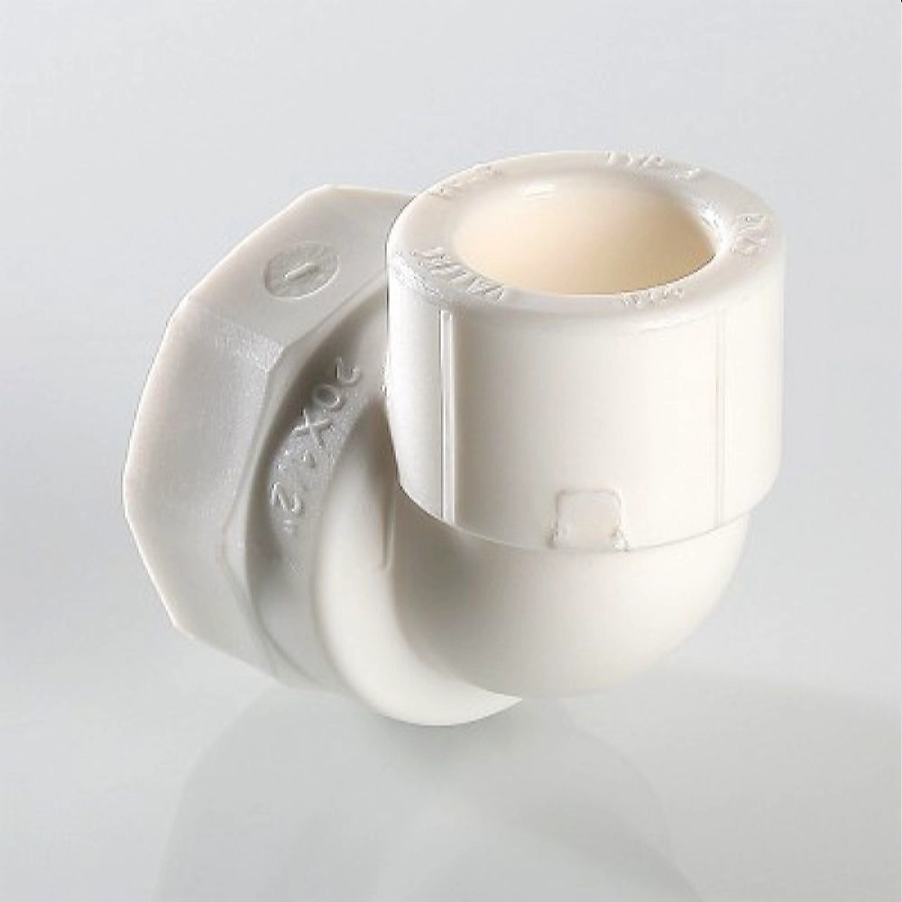 Двухсторонний металлопластиковый фитинг для соединения под углом 90 градусов друг к другу полипропиленового трубопровода и компонента инженерной системы с резьбовым подключением, 20 х 3/4".