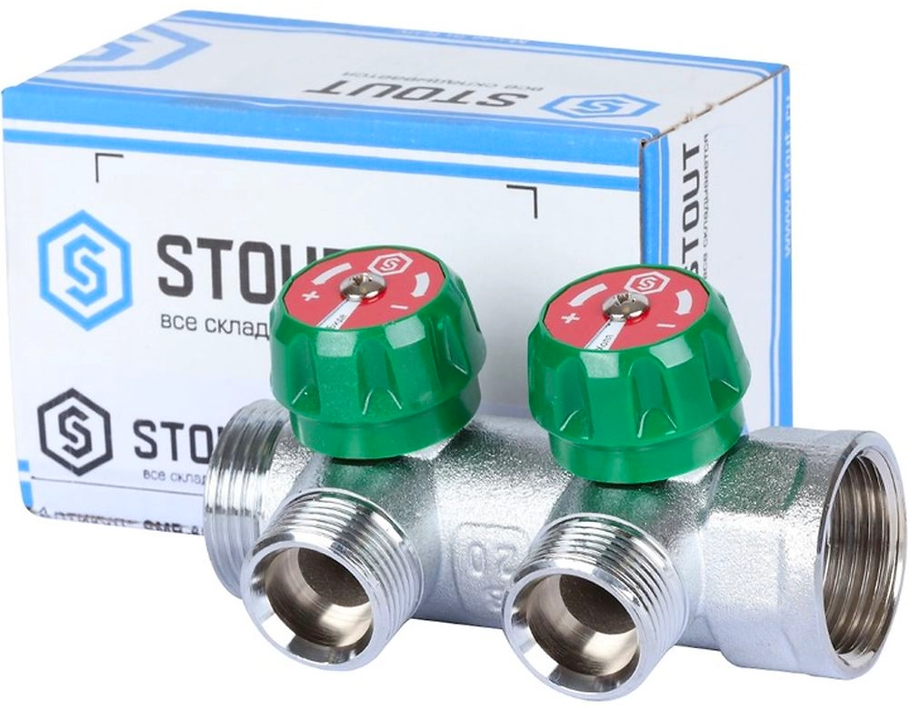 Коллектор регулирующий STOUT 1", 3 отвода 3/4" ЕК