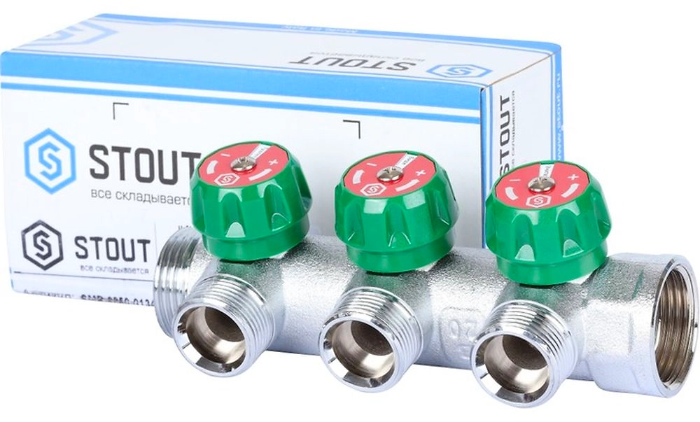 Коллектор регулирующий STOUT 1", 4 отвода 3/4" ЕК