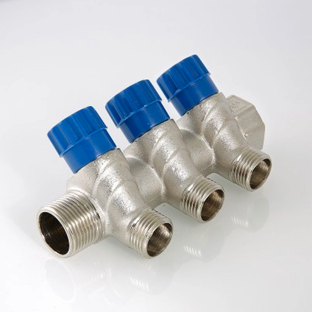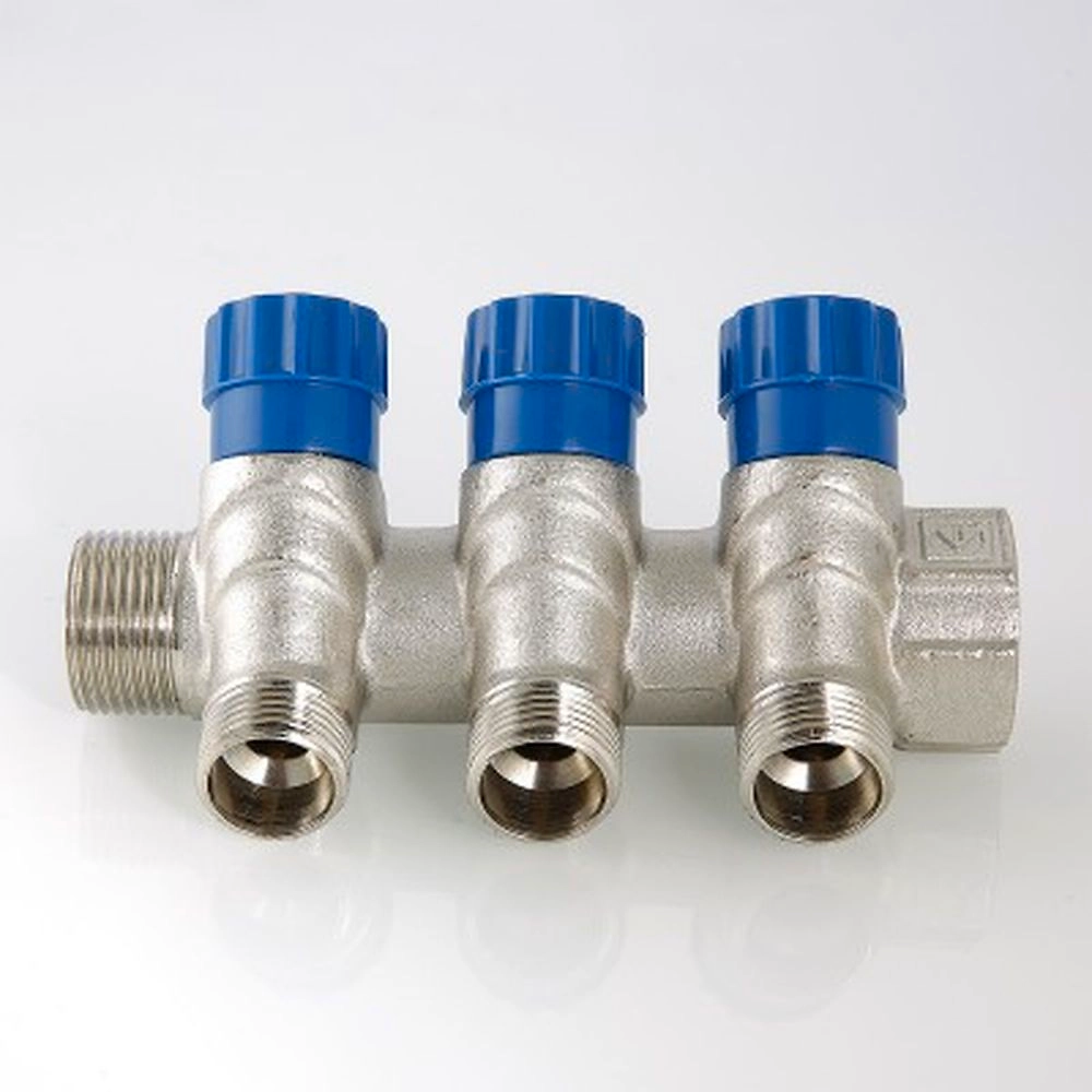 Коллектор с вентилями латунь никелированная VALTEC 1"х 1/2"