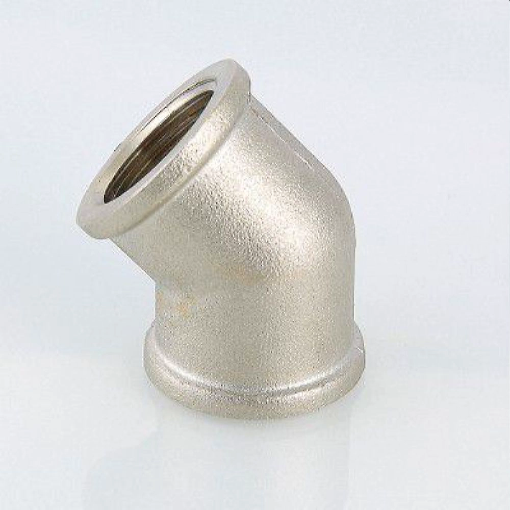 Фитинг резьбовой VTr.091 - латунный никелированный угольник, оси выходных патрубков которого расположены под углом