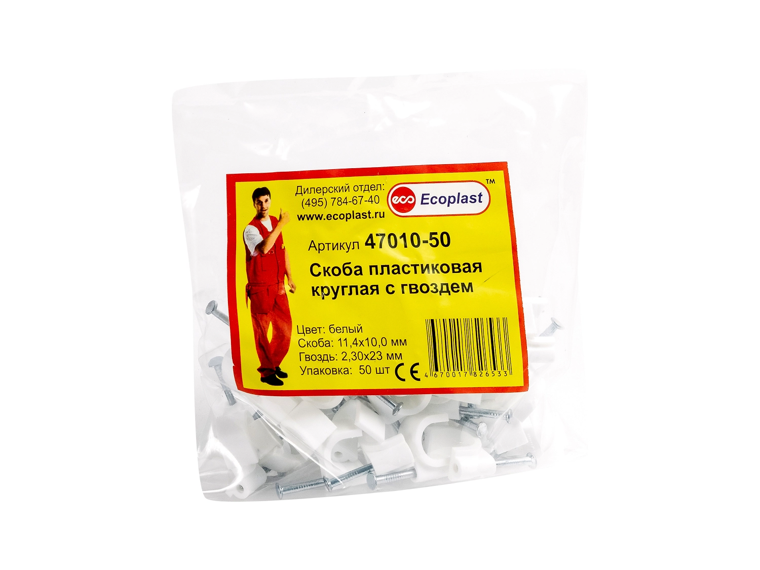 Скоба Ecoplast пластиковая 11,4х10 мм белая