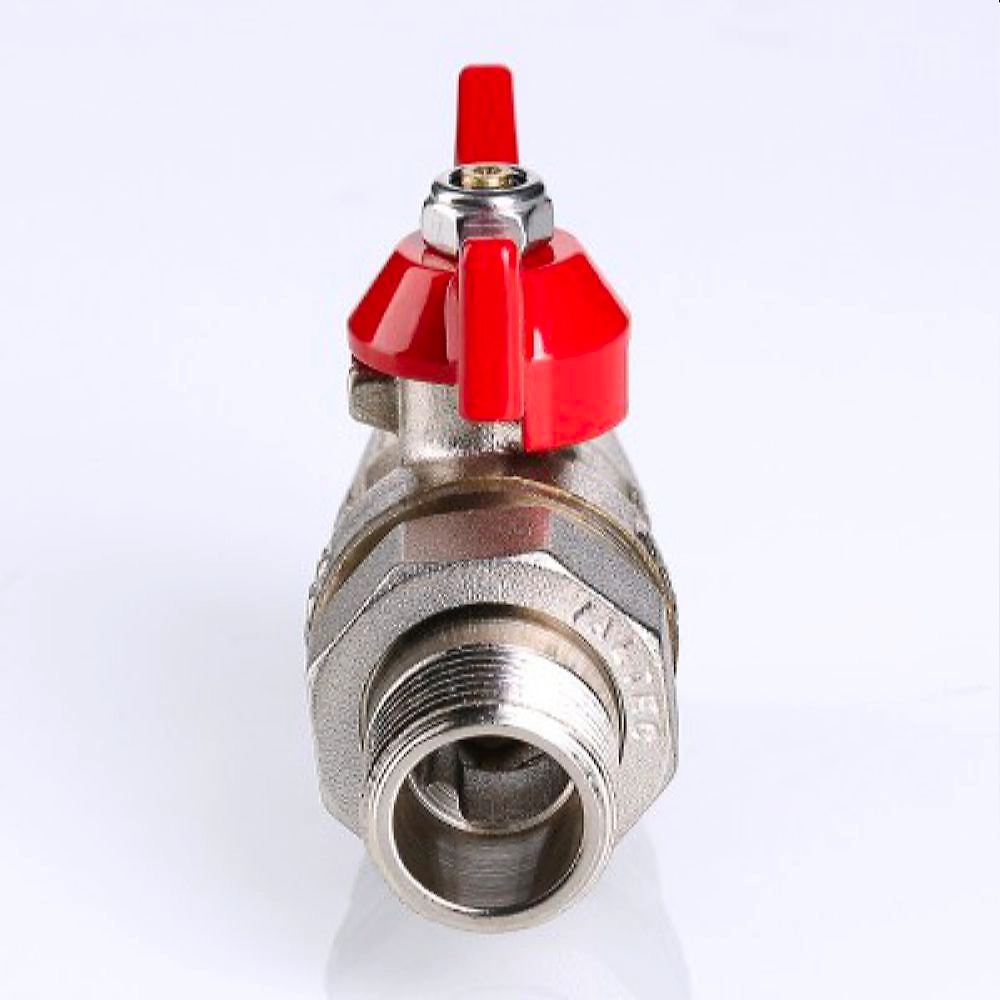 Прямой полнопроходной ремонтопригодный шаровый кран с увеличенным ресурсом, 3/4". Соединен накидной гайкой с резьбовым полусгоном. Корпуса деталей - латунные, никелированные. Кран оснащен ручкой типа "бабочка" с утолщенной стенкой из алюминиевого сплава и эпоксидной покраской. Резьба присоединений – внутренняя/наружная.