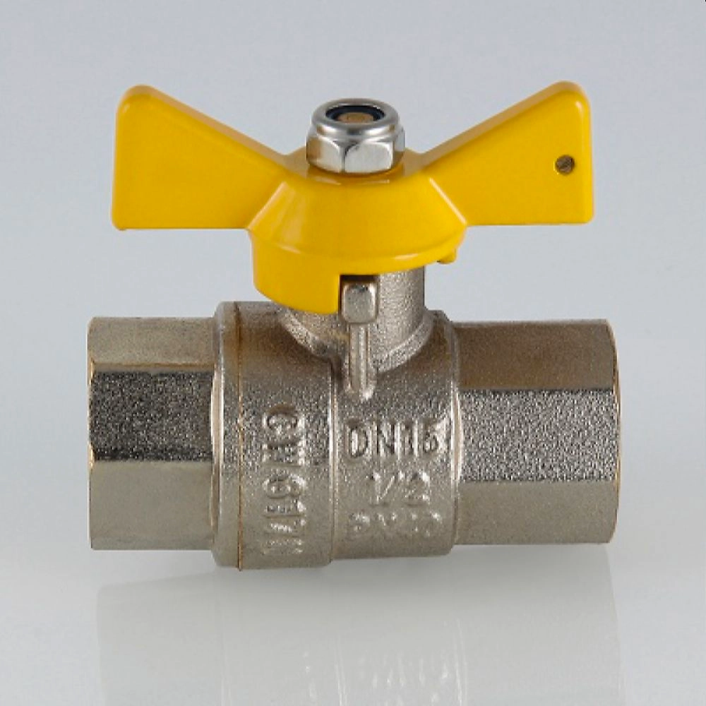 Латунный никелированный кран, предназначенный для использования в качестве запорной арматуры на газопроводах низкого и среднего давления 1/2. Оснащен алюминиевой ручкой типа бабочка. Резьба присоединений - внутренняя/внутренняя. Серия VT.277.N