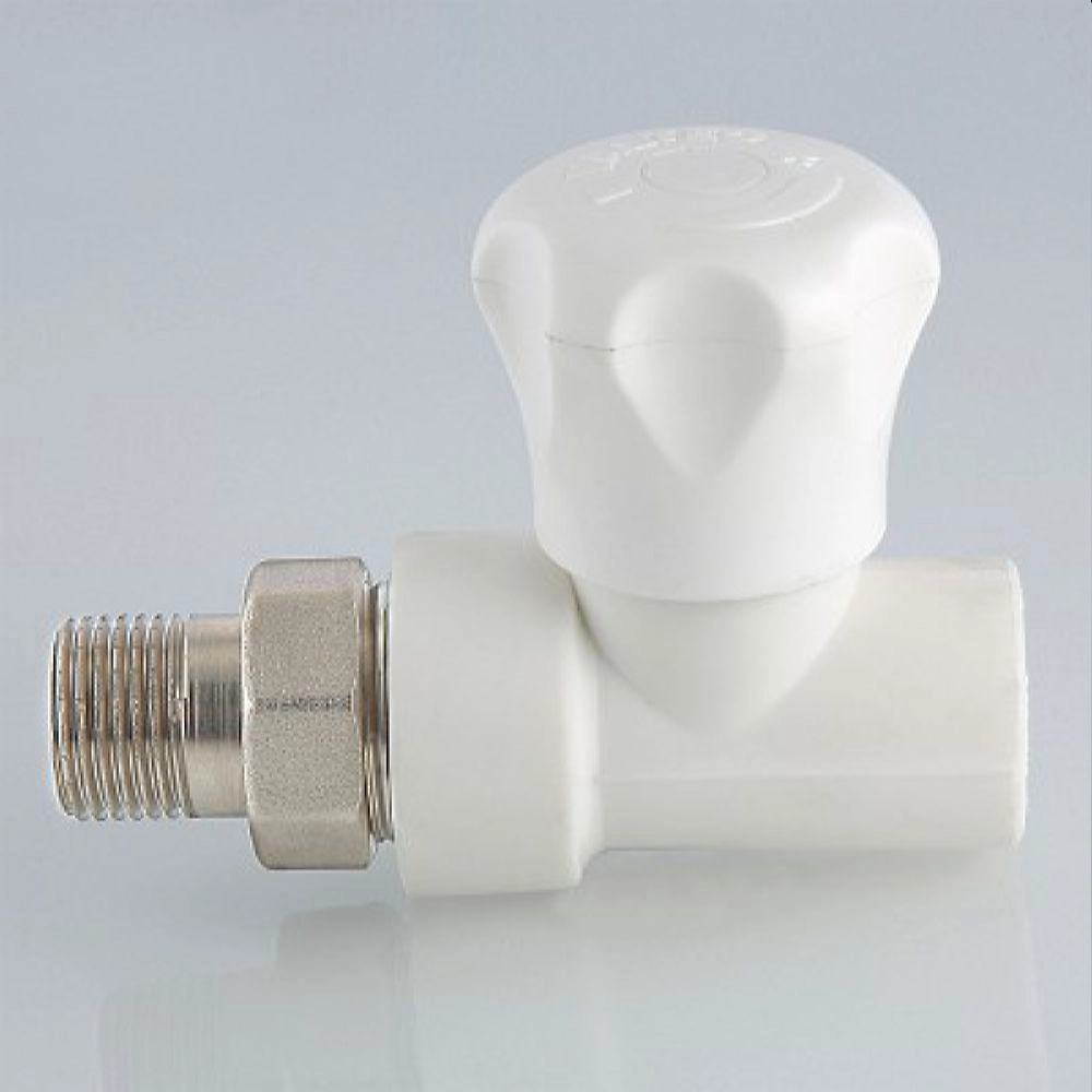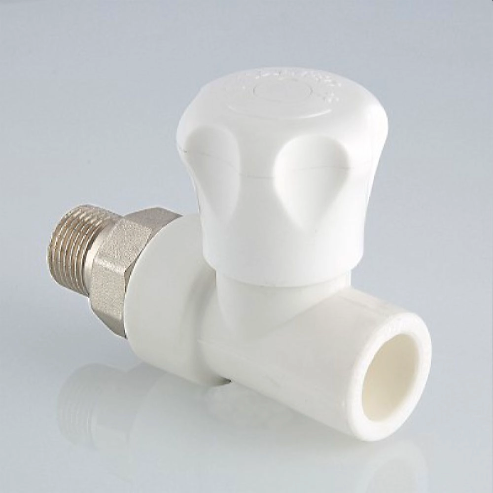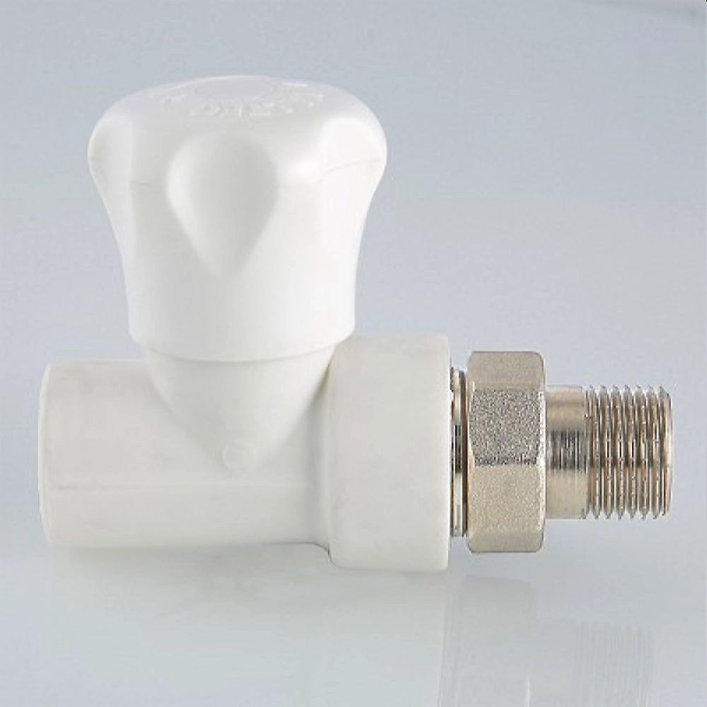 Клапан с полипропиленовым корпусом, прямой. Предназначен для ручной регулировки количества поступающего в отопительный прибор теплоносителя. Клапан позволяет полностью перекрывать поток.