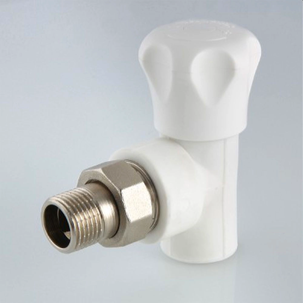 Клапан с полипропиленовым корпусом, угловой. Предназначен для ручной регулировки количества поступающего в отопительный прибор теплоносителя. Клапан позволяет полностью перекрывать поток.