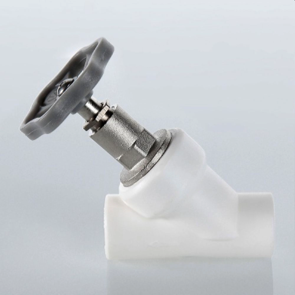 Запорно-регулирующий вентиль с корпусом из полипропилена. По типу конструкции – прямоточный. Преимущество арматуры данного типа – малое гидравлическое сопротивление.