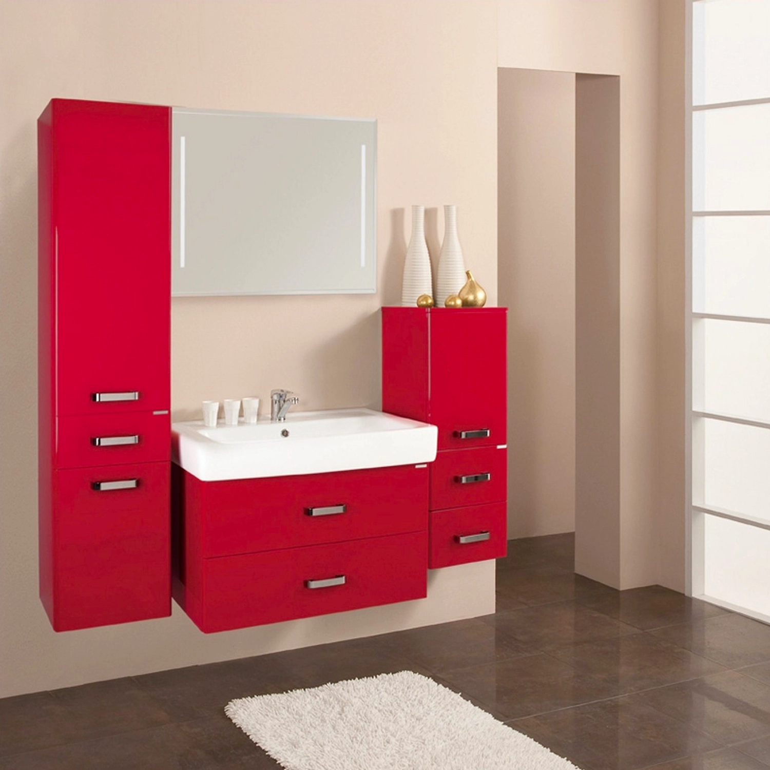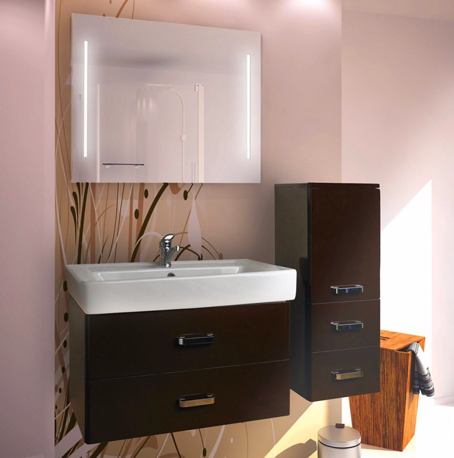 - Благодаря двум встроенным вертикальным лампам зеркало служит дополнительным источником света в ванной.